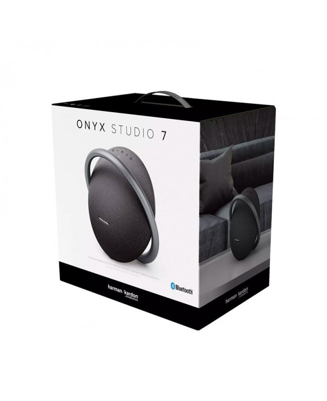 اسپیکر بلوتوثی Harman Kardon Onyx Studio 7 محصول سال 2021 میلادی شرکت هارمن کاردن است که نسبت به نسخه های قبلی دستخوش تغییراتی شده است. یکی از تغییرات اصلی و متفاوت این نسخه نسبت به نسخه های قبلی اضافه شدن یک دسته گرد فلزی به آن است. توان خروجی صدای onyx studio 7 نیز 50 وات می باشد که از یک ووفر 12 سانتی متری و دو توییتر 25 میلی متری حاصل می شود. شارژ کامل اونیکس استدیو 7 تنها 5 ساعت به طول می انجامد و به با هر بار شارژ کامل این اسپیکر (درصورت استفاده حجم صدای 50 درصدی) می توانید تا 8 ساعت از آن استفاده نمایید. اونیکس استدیو 7 هارمن کاردن به واسطه فناوری بلوتوث 4.2 به دستگاه پخش شما متصل می شود و اگر نمی خواهید از قابلیت بلوتوث این دستگاه استفاده کنید می توانید از جک 3.5 میلی متری صدا که روی اسپیکر قرار دارد استفاده نمایید.