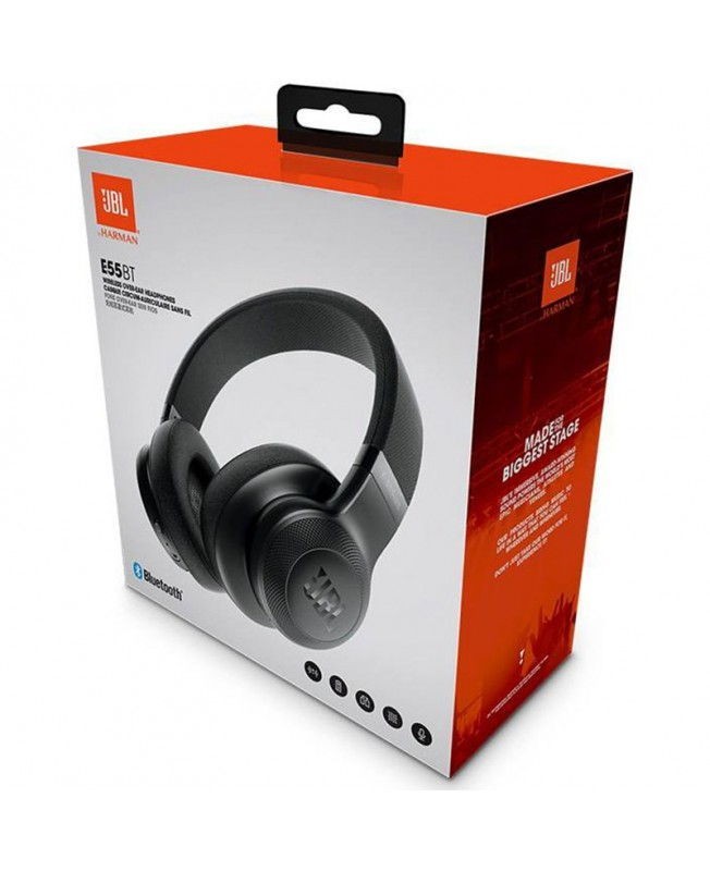 هدفون E55BT محصولی از کمپانی JBL که از طریق بلوتوث به تلفنهمراه یا پخشکنندهی صوتی متصل میشود. علاوهبر بلوتوث، هدفون E55BT میتواند از طریق جک 3.5میلیمتری صدا به محدودهی وسیعی از محصولات متصل شود و میتوانید فایلهای موسیقی را از آنها دریافت و پخش کنید. قطر درایور در این محصول پنجاه میلیمتر است که به خوبی گوش را فرا گرفته و با ایجاد محیطی ایزوله جلوی نشر صدا به محیط اطراف را میگیرد. پوشش روی گوشیهای این هدفون از جنس چرم مصنوعی است که هنگام قرارگیری روی گوش احساس خستگی را به کاربر منتقل نمیکند. جنس هدفون E55BT ترکیبی از پلاستیک فشرده و پارچه است که میتواند در برابر بسیاری از صدمات مقاومت بسیارخوبی از خود نشان دهد. فرکانس پاسخگویی در هدفون E55BT برابر با بازهی بیست هرتز تا بیست کیلوهرتز است. این بازه بهطور کامل محدودهی شنوایی انسان را در بر میگیرد و باعث شنیده شدن تمام صداهای موسیقی توسط کاربر میشود. هدفون جیبیال مدل E55BT انرژی مورد نیاز خود را از طریق یک باتری قابل شارژ داخلی تامین میکند که بهکمک آن میتوان تا بیست ساعت بهصورت مداوم به موسیقی گوش داد. قسمت هدبند این هدفون بهگونهای طراحی شده که میتوان ارتفاع آنرا افزایش داد. هدفون E55BT شرکت جیبیال توسط درگاه MicroUSB شارژ میشود.