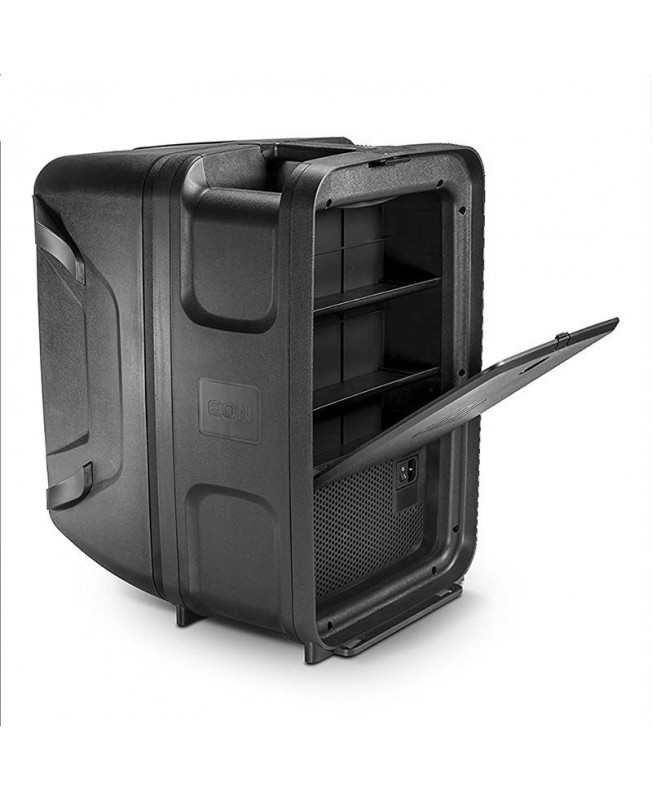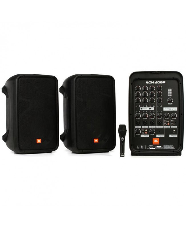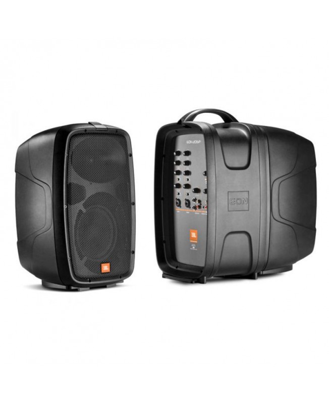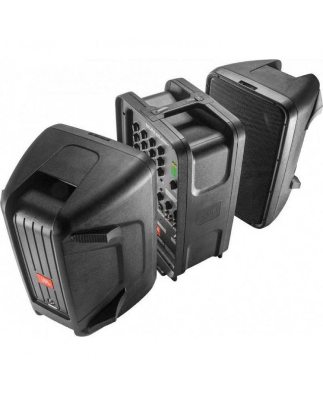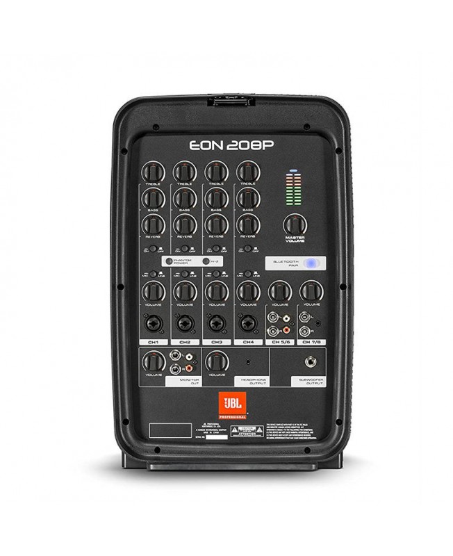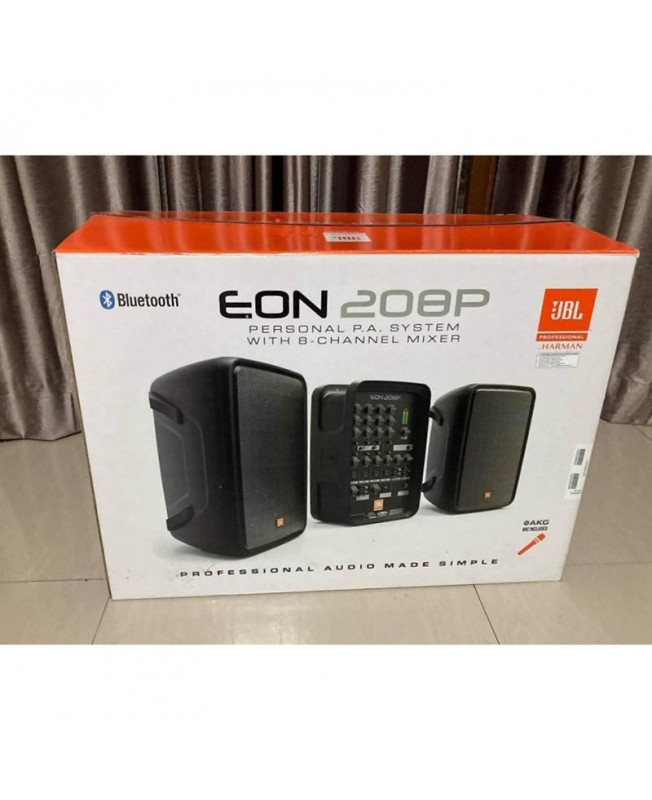 شاید ضرب المثل فلفل نبین چه ریزه به ظاهر در خور این اسپیکر نباشد چرا که ظاهری بزرگ دارد ، اما وقتی صدای آن پخش میشود صدایی بسیار فراگیر و بلند را پخش میکند که اصلا به ظاهرش نمی آید. اسپیکر بلوتوثی جی بی ال مدل EON208P که از سری Professional audio است دارای دو باکس اسپیکر و یک میکسر صدا میباشد که وقتی آن هارا به یکدیگر متصل کنید مانند یک چمدان میشود و حمل آن با توجه به وزن 17.6 کیلوگرمی با ابعاد 575*775*400 میلی متر راحت خواهد بود. جنس بدنه JBL EON 208 P از پلاستیک سخت و اسپیکر های آن با طوری فلزی پوشیده شده است که بدنه ای مقاوم و با کیفیت دارد. وقتی EON 208 P جی بی ال را جعبه گشایی کنید علاوه بر خود اسپیکر ، 2 کابل صدای 6.5 میلی متری ، کابل اتصال به برق و یک میکروفون AKG درون کالا قرار دارد. توان خروجی صدای این اسپیکر قدرتمند تنها 300 وات ( 2 * 150 ) است که صدایی بسیار بلند تر از تصور پخش میکند. هر یک از باکس های اسپیکر دارای یک درایور 8 اینچی و یک توییتر 1 اینچی است که مجموع توان آن ها 150 وات خواهد شد. میکسر صدای این اسپیکر نیز 8 کانال بوده و میتوانید 4 میکروفون و 2 اسپیکر مانیتورینگ ( Left & Right ) را به آن متصل نمایید. همچنین روی این میکسر یک خروجی ووفر با جک 6.5 میلی متری برای اتصال ووفر و یک خروجی هدفون با جک 3.5 میلی متری روی آن قرار دارد. نوع اتصال به این اسپیکر نیر بصورت بلوتوثی است و دکمه اتصال به آن نیز روی میکسر اسپیکر قرار دارد.