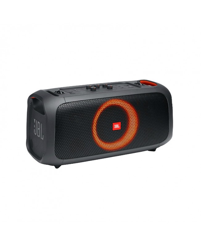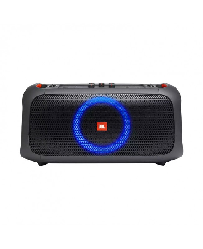 کوچک ترین عضو خانواده پارتی باکس یعنی JBL Party Box On The Go را در ادامه مورد بررسی قرار می دهیم. این اسپیکر بلوتوثی دارای ابعاد 489 در 244.5 در 224 میلی متر و وزن آن 7.5 کیلو گرم است که قابل حمل ترین مدل خانواده پارتی باکس می باشد. توان خروجی پارتی باکس On The Go جی بی ال 100 وات است که از یک ووفر 5.25 اینچی و دو توییتر 1.75 اینچی حاصل می شود و از لحاظ بلندی صدا می توان این اسپیکر را با جی بی ال بوم باکس 2 مقایسه کرد. این نسخه پارتی باکس نیز مانند سایر مدل های آن دارای رقص نور هماهنگ با موزیک است و می توانید نوع آن و رنگ آن را از روی خود اسپیکر تنظیم نمایید.