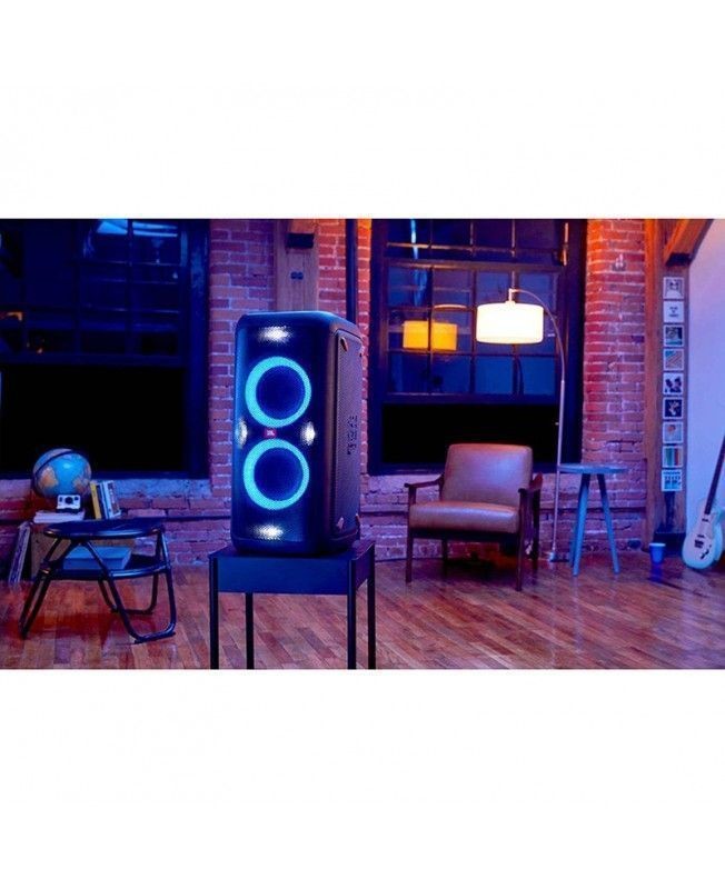 اسپیکر Party Box 300 دارای خروجی بالا؛ صدای پرقدرت و شفاف در ابعادی وسیع،طراحی زیبا، افکتهای متنوع نورانی و قابل حمل بودن است که برای برگزاری مهمانیها و مجالس می تواند گزینه خوبی برای شما باشد. همچنین این اسپیکر از فناوری بلوتوث، پورت USB وخروجی AUX می تواند به دستگاه پخش کننده شما متصل شود. اسپیکر پارتی باکس 300 پرتابل است و انرژی مورد نیاز خود را از طریق یک باتری داخلی لیتیوم یونی پر قدرت با ظرفیت 10400 میلی آمپر ساعت تامین میکند که برای پخشموسیقی به مدت زمان 18 مناسب می باشد و از باتری آن میتوان به عنوان پاور بانک برای شارژ انواع دستگاههای دیگر نیز استفاده کرد.
