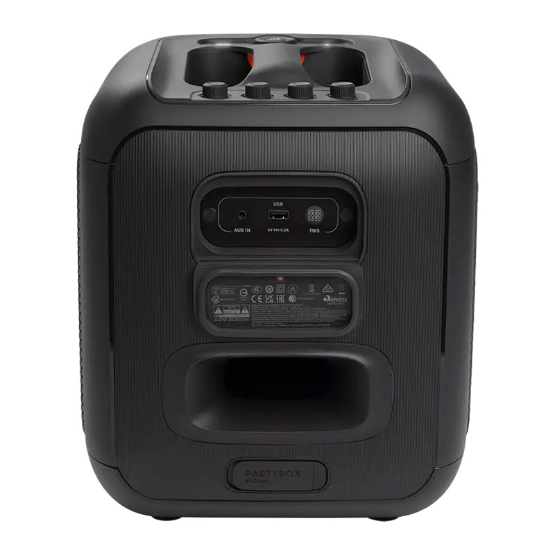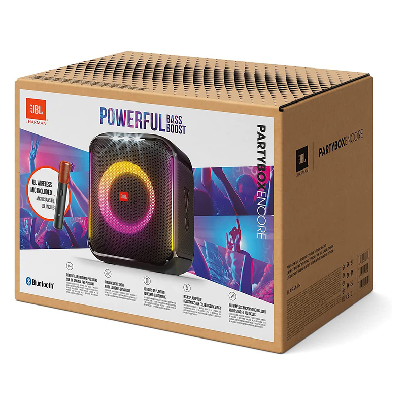 اسپیکر پارتی باکس Encore یکی از جدید ترین محصولات معرفی شده توسط کمپانی جی بی ال بوده که مانند تمام اسپیکر های خانواده پارتی باکس از یک سری ویژگی های منحصر به فرد برخوردار می باشد. این اسپیکر از طریق فناوری بلوتوث 5.1 به تلفن همراه یا هر پخش کنندهی صوتی که این فناوری را پشتیبانی کند متصل میشود و میتواند صدایی با کیفیت و مناسب را به کاربر ارائه دهد. توان خروجی این اسپیکر شرکت JBL برابر با 100 وات و فرکانس پاسخ گویی در آن بازهی 50 هرتز تا 20 کیلوهرتز می باشد. اسپیکر بلوتوثی Partybox Encore طراحی مکعب شکل دارد و این موضوع باعث شده تا از مدل های قبلی اسپیکر های خانواده پارتی باکس که طراحی مستطیل شکل دارند کمی متمایز باشد. کمپانی جی بی ال این اسپیکر را در 2 ورژن با میکروفون و بدون میکروفون عرضه کرده که این مدل نسخه با میکروفون آن می باشد.قیمت اسپیکر جی بی ال در سایت هیلاتل