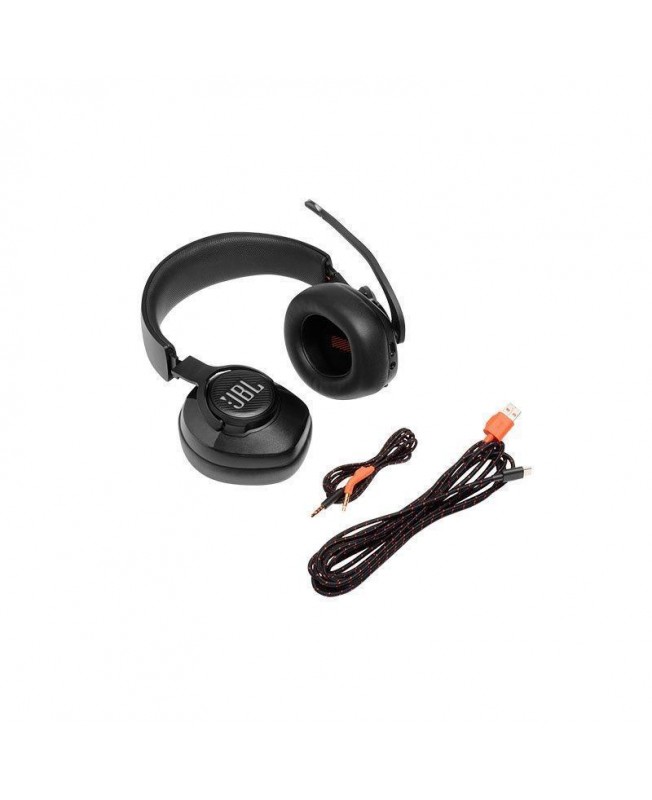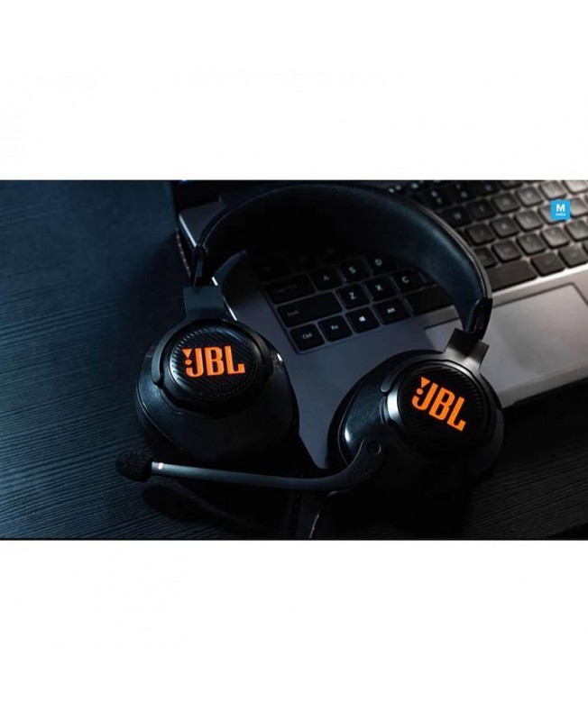 هدفون گیمینگ Quantum 400 محصولی خاص و با کیفیت از کمپانی JBL بوده که از طریق دو نوع کابل AUX و USB به Type-C می توانید به دستگاه های مورد نظر مانند کامپیوتر ، موبایل ، پلی استیشن ، ایکس باکس ، نینتندو سوییچ و VR متصل شوید. اولین چیزی که هنگام استفاده از این هدفون به چشم می آید نور پردازی فوق العاده جذاب آن در قسمت های کناری گوشی هدفون است که لوگوی JBL روی آن قرار دارد. اگر اهل بازی کردن به مدت طولانی هستید ، هدفون Quantum 400 گزینه ی مناسبی برای شما می باشد چرا که نقطه مثبت این هدفون گیمینگ سبک بودن و طراحی ارگونومیک آن است به طوری که وزن آن 274 گرم می باشد.