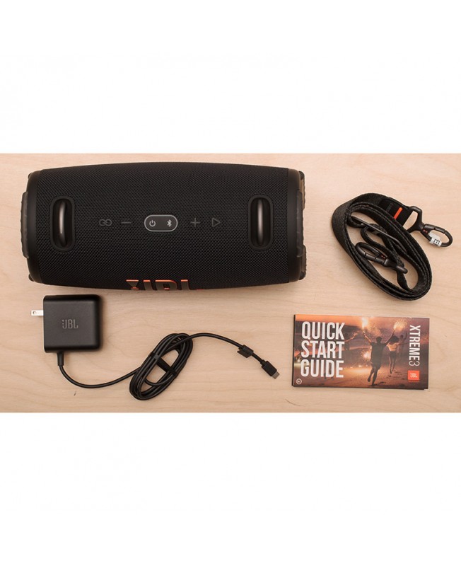 این بلندگو دارای فن آوری اتصال بلوتوث و به کاربران اجازه می دهد تا آسان و سریع چندین بلندگو را به هم متصل کنند، البته لازم به ذکر است که فقط اسپیکر هایی که از فناوری + JBL Connect را دارند قابل اتصال به یکدیگر هستند. اکستریم سه با 4 درایور که شامل دو ووفر و دو توییتر که هر کدام از آن ها 25 وات توان دارند میباشد که توان خروجی کلی اسپیکر را 100 وات RMS میکند ( 2 درایور ووفر 70 میلی متری - 2 درایور توییتر 20 میلی متری ) . بیس کوبنده و میدرنج غنی و پر جزییات، جی بی ال اکستریم 3 را برای پخش انواع سبکهای موسیقی مناسب ساخته است. با یکبار شارژ کامل میتوانید تا 15 ساعت بطور مداوم از اسپیکر استفاده نمایید و صدای دلنشین آن لذت ببرید. البته این عدد کاملا بستگی به میزان بلندی صدا و نوع موزیکی که به آن گوش میدهید دارد. یکی از قابلیت های مهم و جذاب JBL Xtreme 3 ضد آب و ضد گردوغبار بودن آن با استاندارد IP67 میباشد که به راحتی میتوانید آن را در محیط های مختلف استفاده نمایید.