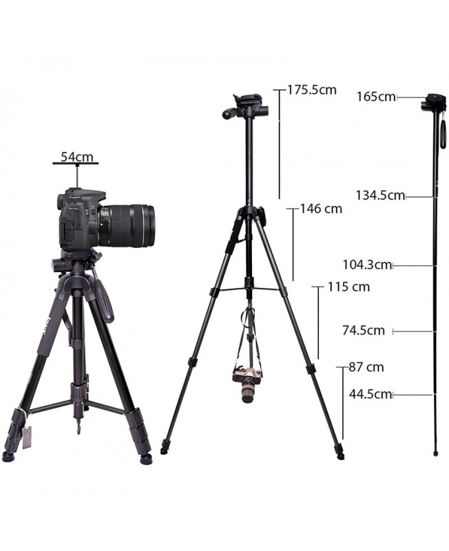 سه پایه KP-2264 تولید شده توسط کمپانی JMARY می باشد که بیشینه ارتفاع آن 175.5 سانتی متر ، حداقل ارتفاع آن 77 سانتی متر و ارتفاع آن در حالت جمع شده 57 سانتی متر می باشد؛ از ویژگی های با اهمیت این سه پایه می توان به قابلیت تبدیل آن به تک پایه ، داشتن قلابی برای قرار دادن دوربین و یک دسته با کیفیت در کنار آن است که این امکان را برای کاربران ایجاد می کند تا به راحتی و بدون درد سر این سه پایه را جابجا کنند . سه پایه دوربین جی ماری مدل Jmary KP-2264 دارای بیشینه تحمل وزن 4 کیلوگرم می باشد و وزن خود این 3 پایه 1.65 کیلوگرم است، همچنین لازم به ذکر است که در قسمت بالایی KP-2264 یک تراز تعبیه شده که می توانید با وحود آن با دقت هر چه تمام تر از عکاسی و تصویر برداری لذت ببرید. کمپانی جی ماری برای این محصول یک عدد کیف حمل در نظز گرفته که در صورت نیاز از آن استفاده نمایید.