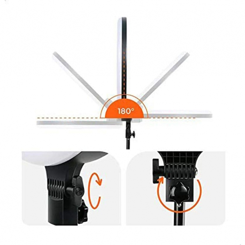 رینگ لایت سه پایه دار محصولی است که شما می توانید با قرار دادن موبایل در جای مخصوص قرار گیری آن و ثابت ماندن آن و با استفاده از نور پردازی رینگ لایت که به بهترین نحو به بالا رفتن کیفیت کار کمک می کند، عکاسی و فیلم برداری کنید پس اگر بدنبال عکاسی و فیلمبرداری به صورت حرفه ای هستید به یک وسیله مناسب برای بالا بردن کیفیت کار مانند رینگ لایت نیاز دارید، اما در کنار خریدن وسیله مناسب انتخاب برند مناسبی که با کیفیت مناسب، بالاترین بازدهی را برای شما به همراه داشته باشد ضروری است، برند جوی روم با رینگ لایت 18 اینچی خود انتخاب محصولی با کیفیت و با بهترین عملکرد را برای شما آسان کرده است.