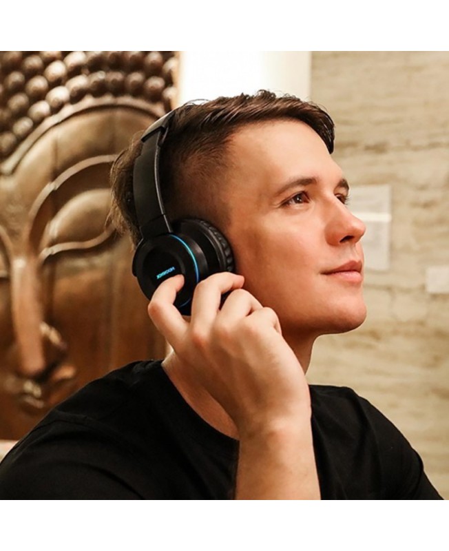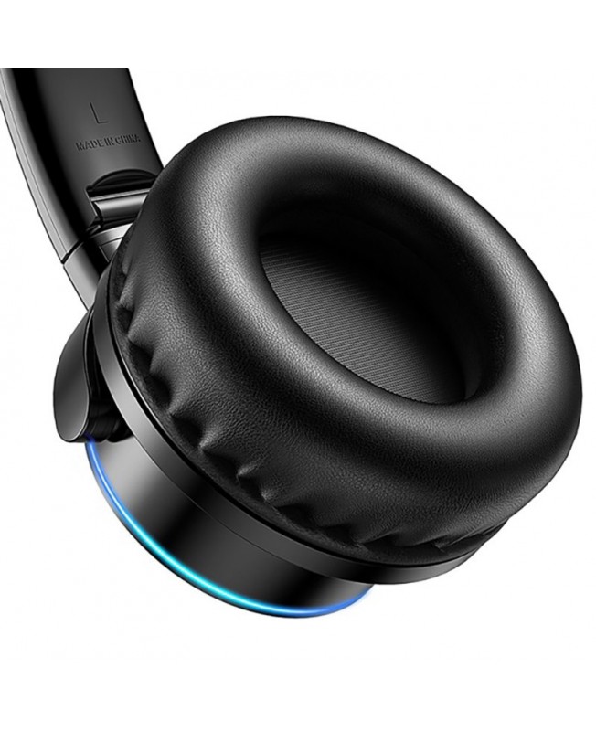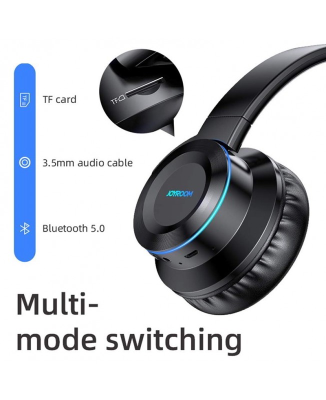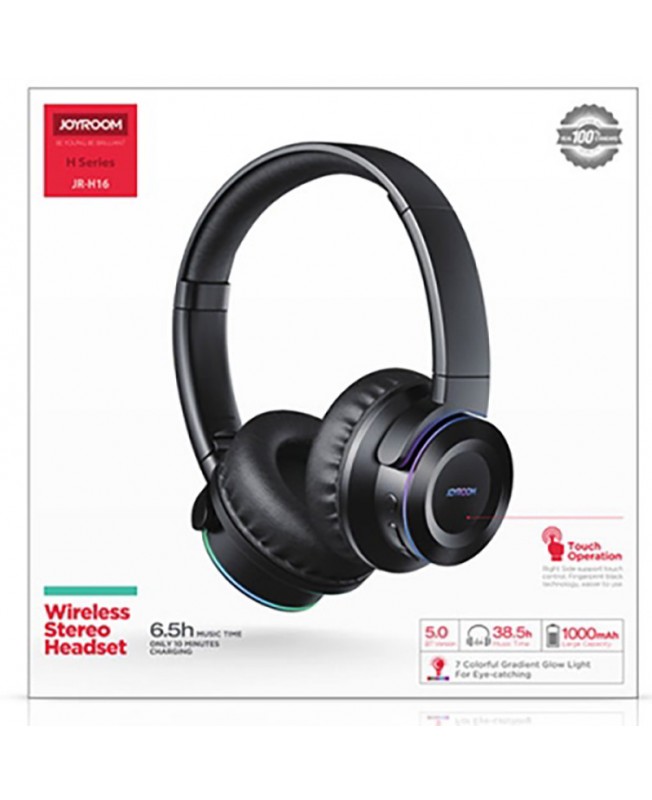هدفون بیسیم جویروم JoyRoom JR-H16 دارای نمای نورانی 7 رنگ که توسط نوار حلقه ای LED طراحی شده بر روی آن به وجود می آید که می تواند در هنگام پخش موسیقی به نمایش درآید و نمای دلنشینی را به هدفون شما بدهد و برای خاموش و روشن کردن آن نیز کافیست دکمه های ولوم + یا – را به مدت 6 ثانیه نگه دارید.دیگر قابلیت هدفون وایرلس جوی روم کنترلر لمسی آن است که این امکان را برای شما به وجود می آورد تا با لمس بر روی آن موسیقی را متوقف/پخش ، ولوم را تنظیم و تماس های خود را مدیریت کنید به این صورت که با یک بار لمس موسیقی پخش و یا توقف و با 2 بار پشت سر تماس برقرار می شود و برای قطع آن نیز تنها کافی است تا انگشت خود را 5 ثانیه روی گوشی سمت راست نگه دارید.اما چیزی که این هدست بلوتوثی را متمایز کرده است روش های مختلف اتصال به آن است به طوری که شما می توانید علاوه بر اتصال با بلوتوث از طریق خروجی 3.5 میلیمتری صدا و ورودی کارت حافظه نوع TF نیز برخوردار است.