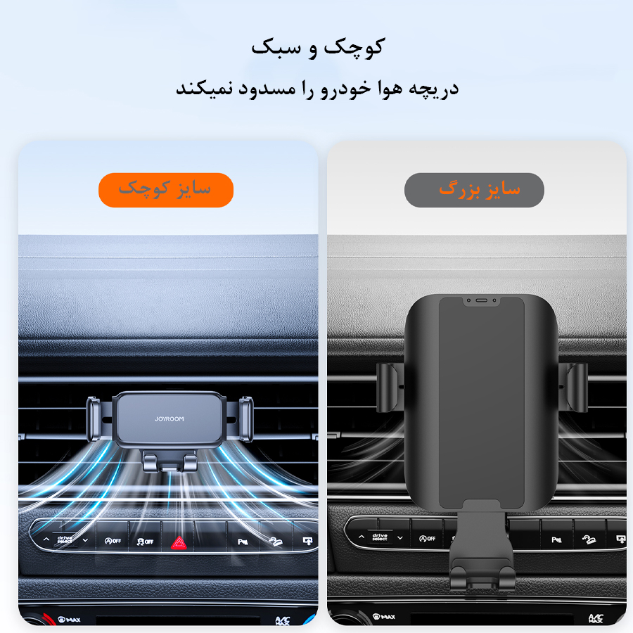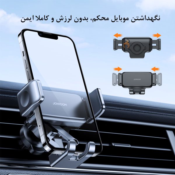 هولدر جویروم با توجه به قسمت گیره ای که در انتهای خود دارد قابلیت نصب روی دریچه کولر را دارد. شرکت جویروم نام این محصول را Car Phone Holder و مدل آن را JR-ZS283 نام گذاری کرده است.همانطور که می توانید در آلبوم تصاویر محصول مشاهده نمایید این هولدر و نگه دارنده موبایل یک اهرم دارد که این قابلیت را به شما بدهد تا زاویه آن تغییر دهید. همچنین قسمت نگه دارنده موبایل آن به صورت مکانیکی کار می کند و از سه جهت موبایل شما را نگه خواهد داشت. یکی از نکاتی که باید راجع به این هولدر در نظر داشته باشید بازو های نگهدارنده آن است که از سه جهت گوشی شما را نگه می دارد. لبه های این هولدر فنری است و زمانی که گوشی را روی آن قرار می دهید نیاز است تا با دست آن ها را فشار دهید تا گوشی شما کیپ شود. برای باز کردن آن نیز یک دکمه کنار هولدر قرار دارد تا گوشی شما را آزاد می کند.