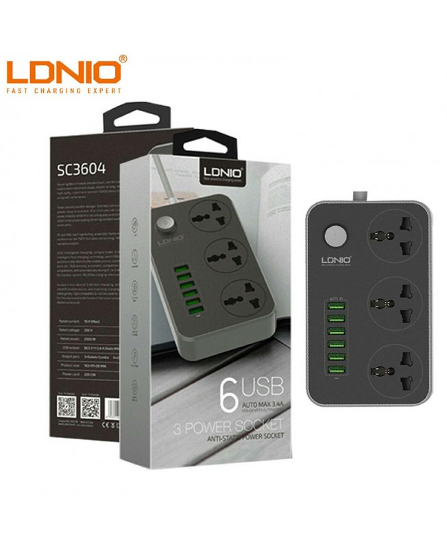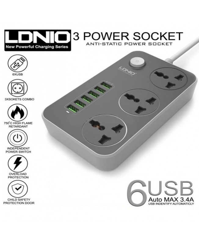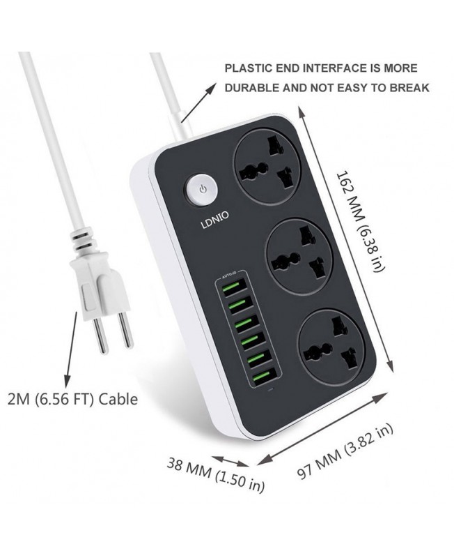 چند راهی برق 2 متری LDNIO با 6 درگاه USB و 3 عدد پریز یونیورسال این امکان را برای کاربران ایجاد می کند تا بتوانید به طور همزمان 9 دستگاه خود را به برق متصل کرده و آنها را به طور همزمان شارژ کنند .