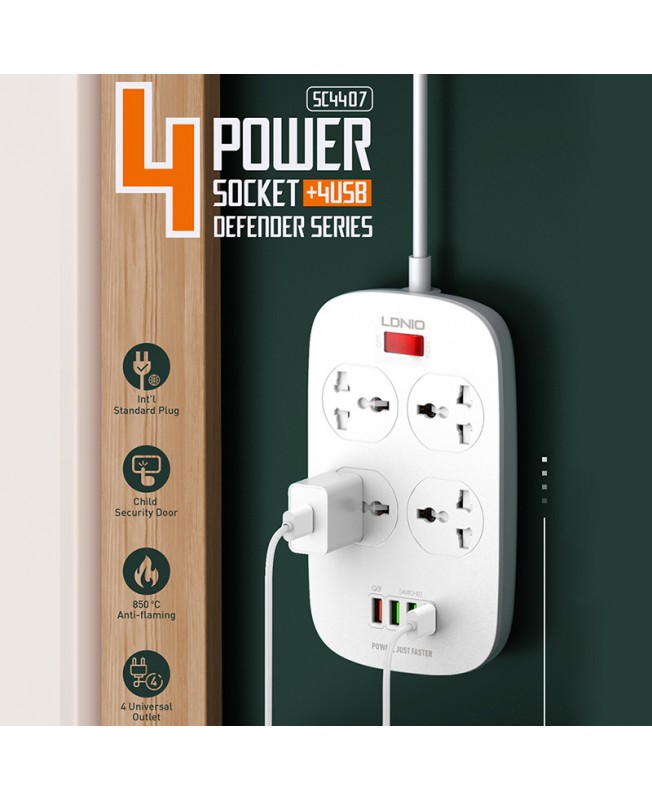 چند راهی برق 2 متری الدینیو | LDNIO SC4407 Defender Series