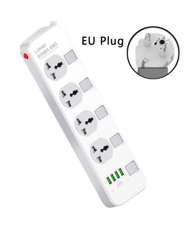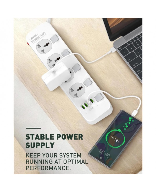 چند راهی برق 2 متری LDNIO با 4 عدد پریز و 4 درگاه USB یونیورسال این امکان را برای کاربران ایجاد می کند تا بتوانید به طور همزمان 8 دستگاه خود را به برق متصل کرده و آنها را به طور همزمان شارژ کنند .