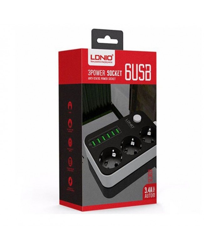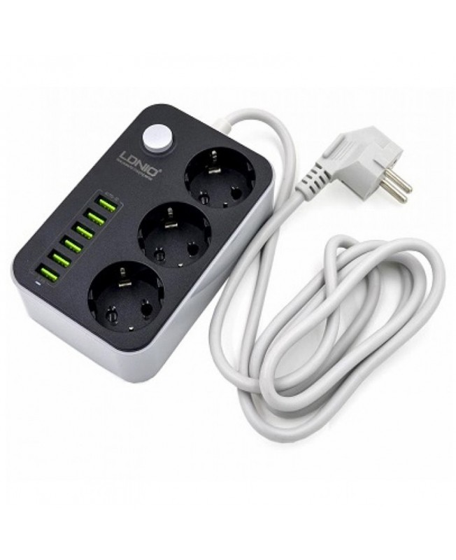 چند راهی برق 2 متری LDNIO با 6 درگاه USB و 3 عدد پریز یونیورسال این امکان را برای کاربران ایجاد می کند تا بتوانید به طور همزمان 9 دستگاه خود را به برق متصل کرده و آنها را به طور همزمان شارژ کنند .