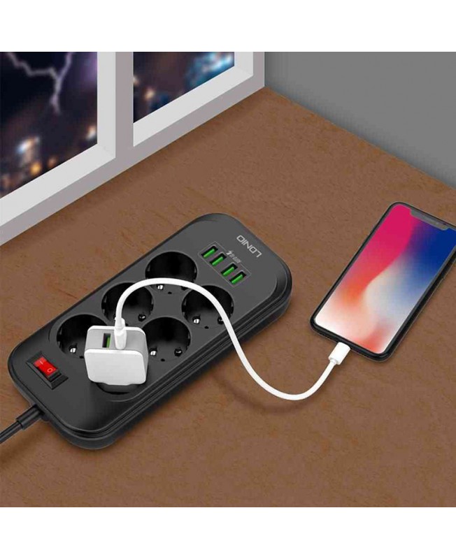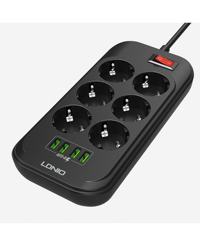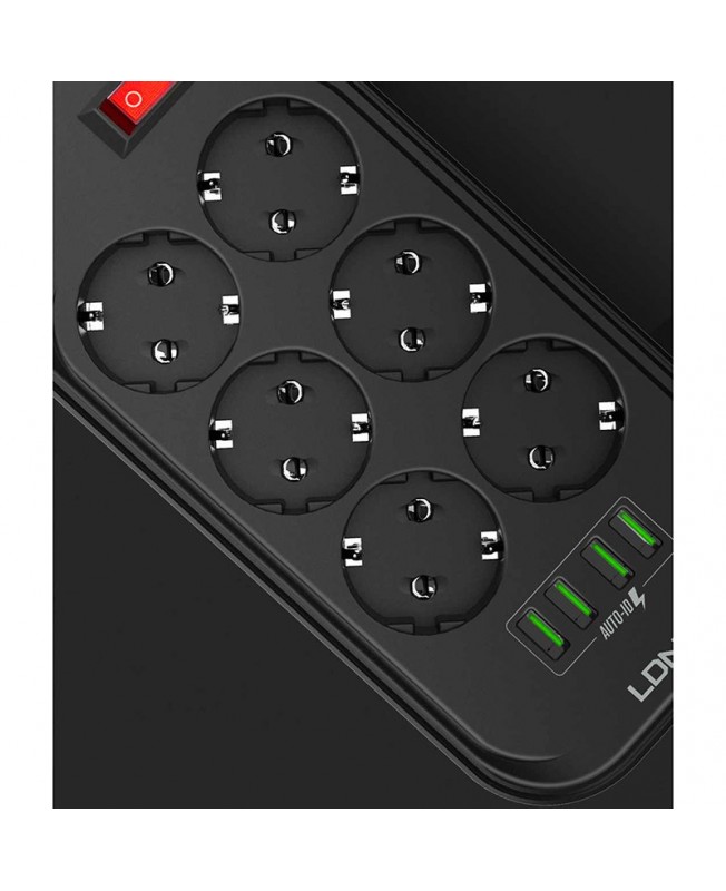 چند راهی برق 2 متری LDNIO با 4 درگاه USB و 6 عدد پریز یونیورسال این امکان را برای کاربران ایجاد می کند تا بتوانید به طور همزمان 10 دستگاه خود را به برق متصل کرده و آنها را به طور همزمان شارژ کنند .