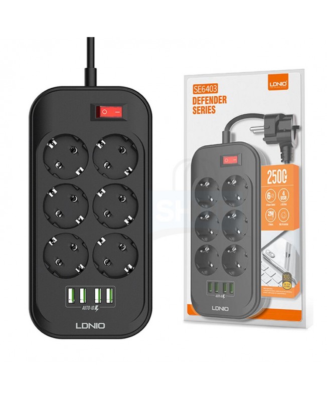 چند راهی برق 2 متری الدینیو | LDNIO SE6403 Defender Series