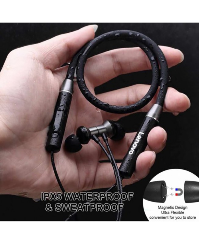 در ابتدا باید به این نکته اشاره کرد که این هدفون دور گردنی بوده و مزیت آن این است که در طولانی مدت شما احساس سنگینی نخواهید کرد. در دو سر این هدفون آهنربا قرار گرفته و زمانی که فصد استفاده از آن را ندارید به هم متصل می شوند و در حالت قدم زدن و یا هنگام دویدن اجازه جا به جا شدن به هندزفری داده نمی شود.علاوه بر کنترل فایل های صوتی توسط گوشی موبایل و یا تبلت و لپ تاپ و ... شما می توانید با کلید های فیزیکی تعبیه شده روی این هدست نیز حجم صدا و متوقف کردن پخش و پلی شدن و همچنین پاسخ دادن به تلفن همراه را نیز خواهید داشت. همچنین لازم به ذکر است که این هدفون از استاندارد IPX5 بهره می برد که باعث می شود شما به راحتی از این هندزفری لنوو بدون هیچ گونه نگرانی در رطوبت و زیر باران از آن استفاده نمایید.