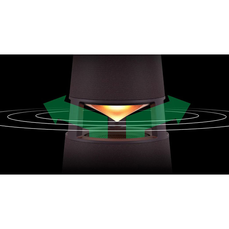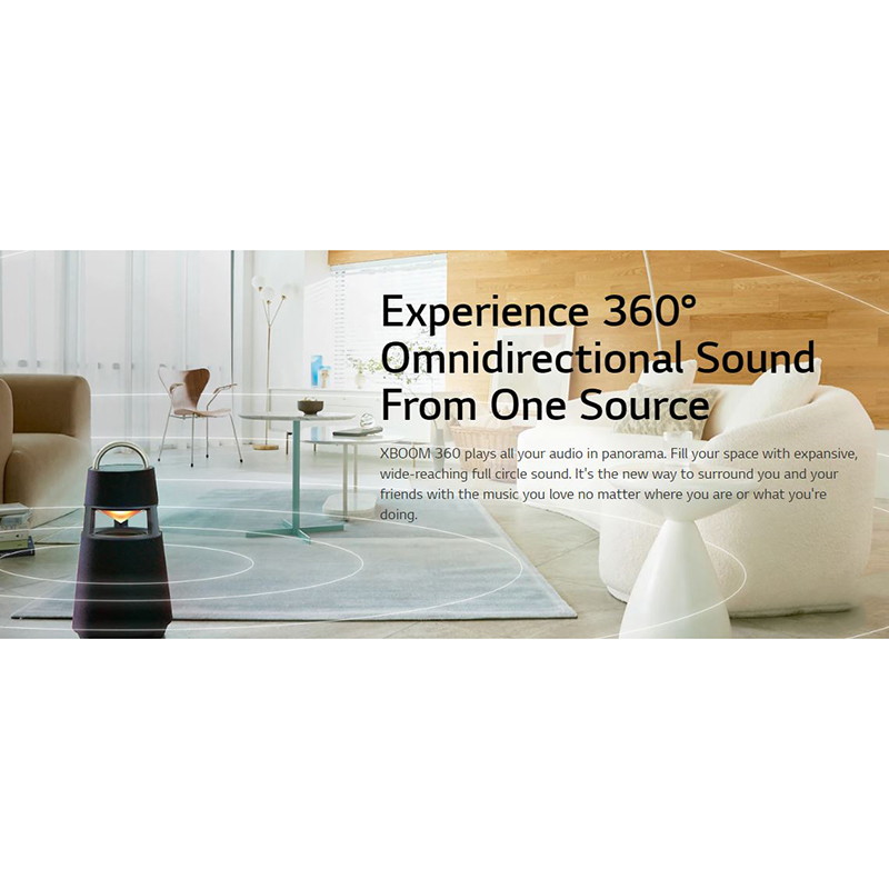 اسپیکر XBOOM 360 تولید شده توسط برند LG می باشد که محبوبیت بالایی در زمینه تولید محصولات الکتریکی دارد. این اسپیکر توانایی پخش صدا به صورت همه جانبه یا 360 درجه را دارد، به گونه ای که امواج صدا به صورت دایره ای پخش می شنود تا به همه نقاط به خوبی صدا برسد. دلیل این قابلیت فناوری به کار رفته در اسپیکر LG بوده که باعث شده برخلاف بسیاری از این دسته محصولات نیازی نباشد تا مکان مناسبی را برای شنیدن صدا انتخاب کنید و فرکانس صدای آن به صورت دایره ای و منظم پخش می شود تا به راحتی صدا را با کیفیت بالا بشنوید.
