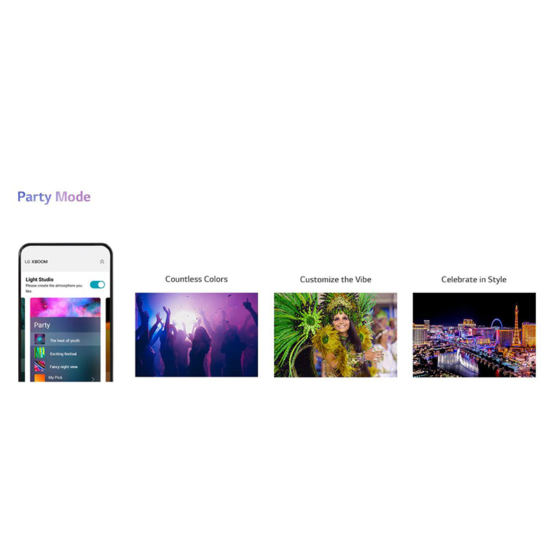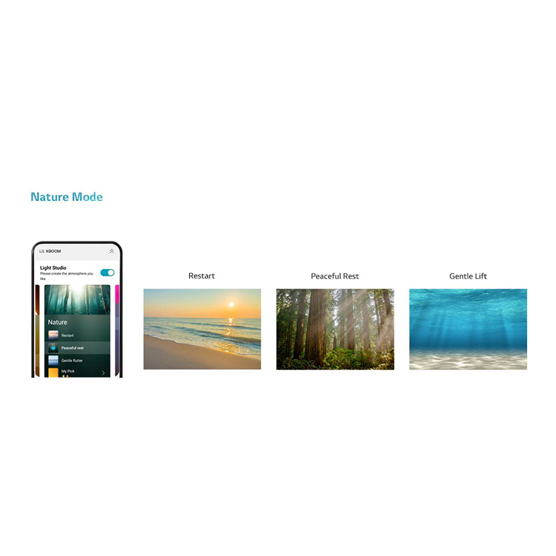 اسپیکر بلوتوثی LG دارای توانایی پخش نور به صورت 360 درجه بوده که البته حالت های مختلفی را برای پخش نور در اختیار کاربران می گذارد تا بتوانند به دلخواه از میان آن ها انتخاب کنند و به این نحو کار می کند که 3 حالت پخش نور به صورت، نورپردازی مخصوص استراحت و ریلکس کردن، نورپردازی در حالت مشابه طبیعیت و حالت مناسب مهمانی را در اختیارتان می گذارد که هر کدام سه نوع مختلف دارند و انتخاب از میان آن ها و تنظیم نور با استفاده از اپلیکیشن LG XBOOM ممکن می باشد. البته لازم به ذکر است که با استفاده از این اپلیکیشن می توانید قابلیت های Mix کردن آهنگ ها را نیز داشته باشید و تجربه کارکردن با صدا مانند یک DJ را تا حدودی برای شما به ارمغان می آورد.