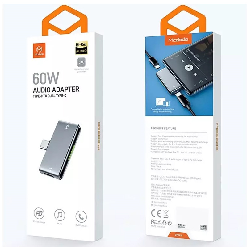 مبدل Mcdodo که USB-C را به دو خروجی USB-C تبدیل می کند ، این امکان را به شما می دهد تا به طور همزمان موبایل خود را شارژ کنید و همزمان هدفون یا هندزفری به آن متصل کنید. این مبدل دارای ابعاد 45*28*8 میلی متر با وزن 11 گرم است که قسمت USB-C آن قابلیت پشتیبانی از شارژ سریع Pd با بیشینه توان 60 وات را دارد. همچنین روی لوگوی Mcdodo یک چراغ وجود دارد که آن را جذاب کرده است. در آخر هم باید به این نکته اشاره کرد که این مبدل تاثیری در کیفیت پخش موزیک هنگام اتصال هدفون به آن نخواهد داشت.