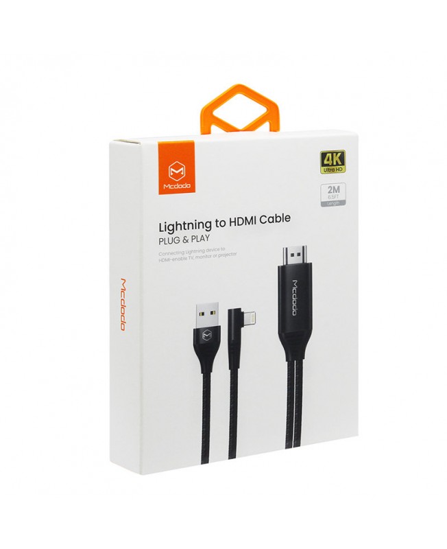 کابل انتقال تصویر Lightning to HDMI Cable برند مک دودو با بهره مندی از چیپست هوشمند دارای طول 2 متری و کانکتور هایی از جنس آلومینیوم جهت اتصال دستگاه های آیفون 5 و مدل های بالاتر و آیپد 4 و مدل های بالا تر به مانیتور و یا تلویزیون می باشد و می توان از آن برای تماشای انواع بازی و فیلم استفاده کرد. درباره کیفیت این کابل هم باید گفت از وضوح 4K پشتیبانی می کند. قسمت لایتنینگ کابل تبدیل مک دودو به صورت 90 درجه است تا هنگام استفاده از موبایل به صورت افقی مخاطب را اذیت نکند.