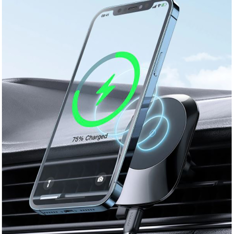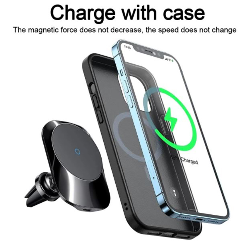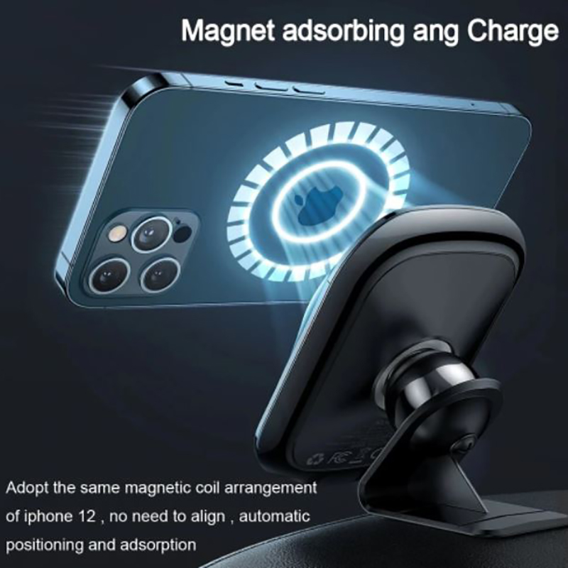 این پایه نگهدارنده و شارژر بی سیم برای نگهداشتن آیفون های سری دوازده به بعد که دارای خاصیت مگنتی یا مگ سیف می باشند، مناسب است و به صورت مغناطیسی به آن ها متصل شده و با توان خروجی حداکثری 15 وات گوشی را شارژ می کند