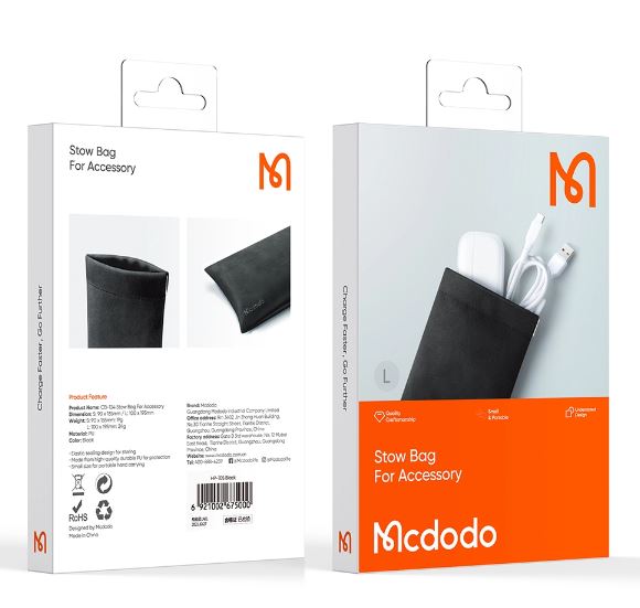 کیف CB-1242 برند مکدودو از جنس پلاستیک PU بوده و بسیار سبک و خوش دست ساخته شده و دارای مقاومت مناسبی در برابر آب می باشد، از این کیف جهت حمل لوازم جانبی مانند : انواع شارژر ، پاوربانک ، فلش ، هارد اکسترنال و هندزفری می توان استفاده کرد. کیف لوازم جانبی مکدودو Stow Bag CB-1242 دارای 19 گرم وزن و دارای ابعاد 90*135 میلی متر می باشد .