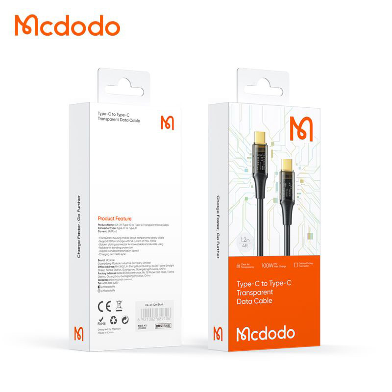 این کابل محصول شرکت Mcdodo می باشد که می توان با استفاده از آن دستگاه های دارای درگاه تایپ سی را شارژ کرد، البته به این نکته نیز توجه داشته باشید که این محصول توانایی انتقال اطلاعات را با حداکثر سرعت 480Mps داراست. جنس بدنه این کابل کنفی و کانکتورها فلزی بوده و دارای طول 120 سانتی متری می باشد که همین موضوع سبب شده تا این کابل به راحتی قابل حمل باشد.کابل CA-2110 از حداکثر شدت جریان 5 آمپر و ولتاژ 20 ولت پشتیبانی می کند و می تواند تا حداکثر خروجی 100 وات (PD) را در اختیار کاربران قرار دهد، البته برای استفاده از حداکثر خروجی باید آداپتور مورد استفاده نیز از این توان پشتیبانی کند.در آخر هم باید به این نکته توجه داشته باشیدکه این کابل دارای مقاومت 1500 بار در برابر خمش می باشد که عمر استفاده آن را دو چندان می کند.