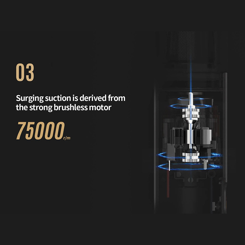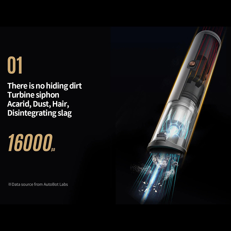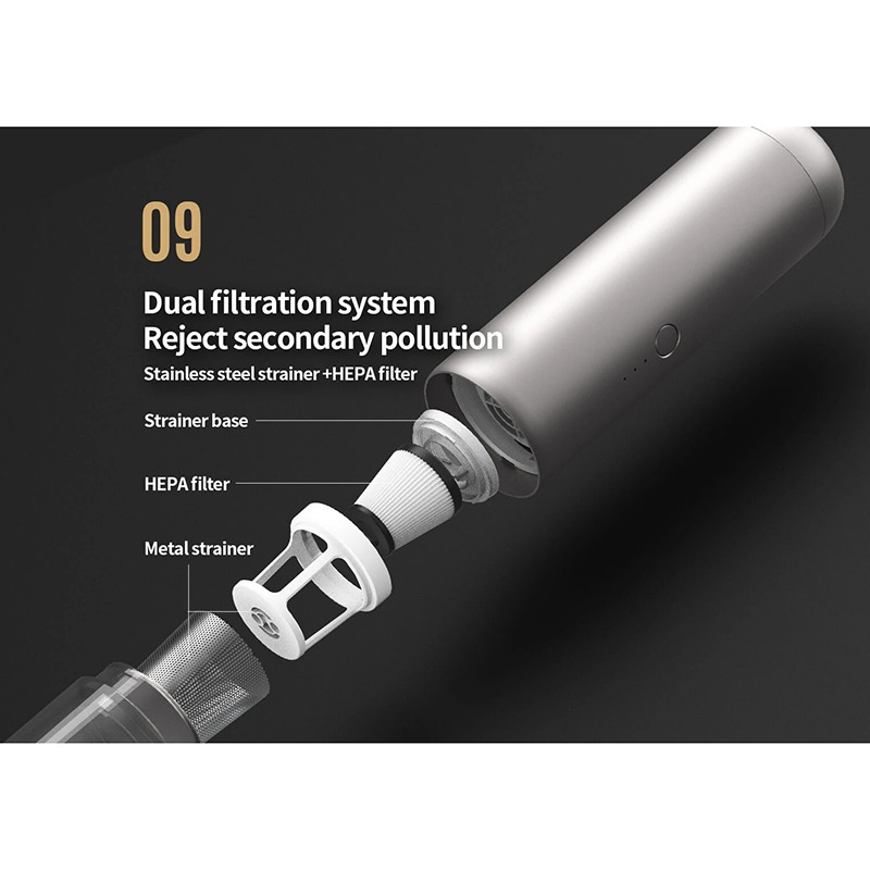 جارو شارژی و قابل حمل شیائومی با باتری 2000 میلی آمپر ساعتی و توان 120 وات دارای وزن 530 گرم و قدرت مکش 16000 پاسکال در حالت ماکسیموم می باشد.