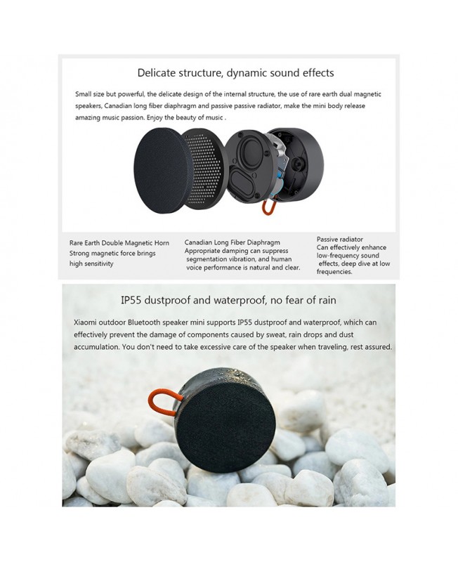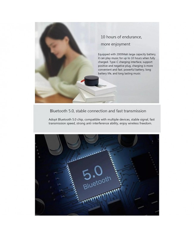اسپیکر قابل حمل و بلوتوثی شیائومی با قابلیت پخش مدام برای 10 ساعت می تواند اوقات خوبی را برای شما فراهم کند و با وجود گواهی نامه استاندارد IP67 خیال شما را برای جابجایی و استفاده ار آن در هر زمانی راحت می کند.