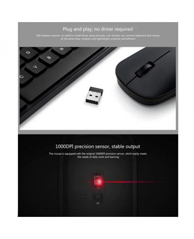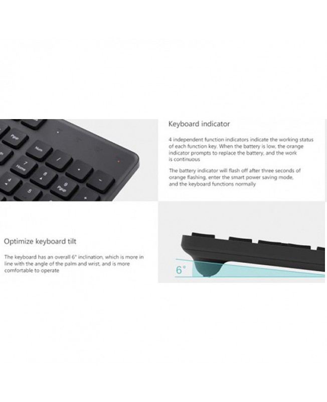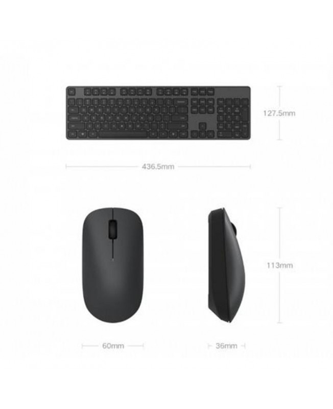 مجموعه WXJS01YM برند شیائومی شامل یک ماوس 2.4 گیگاهرتزی با ابعاد 36*60*113 میلی متر و یک کیبورد 104 کلید استاندارد با ابعاد 27.5*127.5*436.5 میلی متر می باشد که هر دو این محصول ها به صورت وایرلس و بدون سیم به سیستم های شما و با کمک دانگل متصل می شوند ، منبع تغدیه هر دو محصول شیائومی نیز یک عدد باتری می باشد که شرکت تولید کننده جهت سهولت در انجام کار دو عدد باتری در بسته بندی آن قرار داده است، کیفیت ساخت کیبورد و ماوس بی سم شیائومی نیز به دلیل استفاده از جنس پلاستیک با کیفیت مناسب بوده و می تواند عمر استفاده طولانی مدتی (عمر کیبورد 30 میلیون کلید) را برای کاربران فراهم سازد.درباره ویژگی های این دو محصول هم باید اشاره کرده که ماوس ان از فرکانس 2.4 گیگا هرتزی به همراه حساسیت 1000dpi بهره مند می باشد و کیبورد شیائومی نیز از طراحی ارگونومیک همراه با نشانگر کاهش باتری ، حک حروف و اعداد به صورت لیزری پشتیبانی می کند.