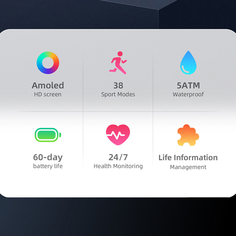 سنسور های در نظر گرفته شده برای این ساعت شامل حسگر اکسیژن خون، شتاب سنج ، ژیروسکوپ ، گام شمار و ضربان قلب می باشد که وجود آنها باعث شده تا این ساعت هوشمند توانایی ردیابی و بررسی 38 حالت ورزشی از جمله یوگا، شنا، کوهنوردی، پارکور، دویدن، شنا، راه رفتن، دوچرخه سواری و..... را در کنار پایش 24 ساعته ضربان قلب داشته باشد.البته با نصب برنامه مخصوص این ساعت هوشمند و اتصال آن به گوشی موبایل خود می توانید به دیتاهای ورزشی ، تنطیم واچ فیس و آلارم ، اطلاعات سلامتی و همچنین امکان مشاهده نوتفیکشن ها بر روی ساعت خود دسترسی داشته باشید؛ در آخر هم باید اشاره کرد که واچ X1 از گواهی استاندارد ATM5 نیز پشتیبانی می کند که آن را در برابر آب تا عمق 50 متری مقاوم کرده است.