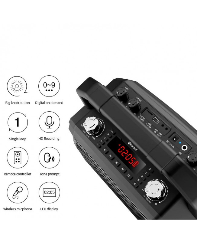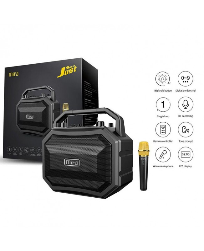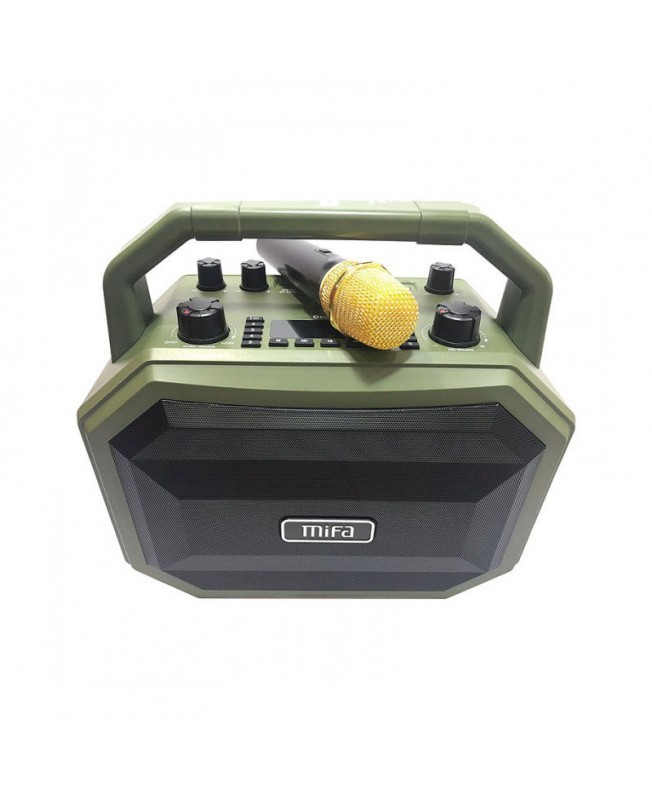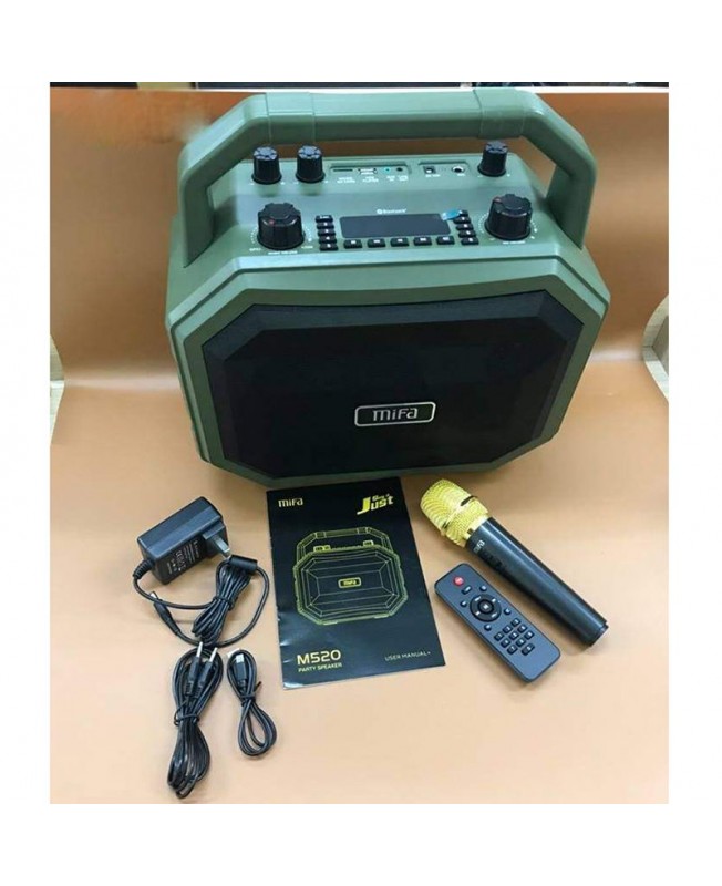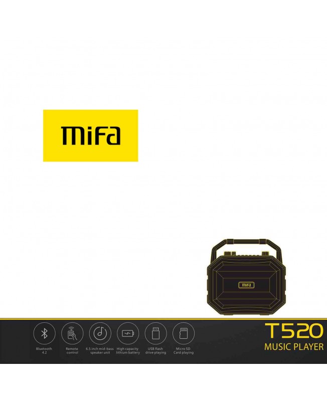 اسپیکر بلوتوثی میفا Mifa T520 با توان خروجی 30 واتی یک اسپیکر مناسب برای فضای بسته و حتی باز برای گوش دادن به موسیقی میباشد. با یک ووفر 6.5 اینچی و یک اسپیکر تریبل 2 اینچی گوش دادن به موزیک با اسپیکر میفا Mifa T520 لذت بخش خواهد بود. با باطری 4000 میلی آمپر ساعتی لیتیومی که روی Mifa T520 تعبیه شده است میتوان بدون نگرانی از زود تمام شدن باطری به موسیقی گوش دهید. یک قابلیت ویژه ای که روی اسپیکر Mifa T520 قرار دارد ، داشتن یک میکروفون بی سیم داخل جعبه آن میباشد که این امکان را به شما میدهد تا همزمان با موسیقی مورد علاقه خود بخوانید. همچنین تنظیمات صدای خواننده از روی اسپیکر و حتی از طریق کنترل اسپیکر قابل تنظیم میباشد. تنظیماتی مثل میزان صدای خواننده و اکو. همچنین روی اسپیکر تنظیمات دیگری مثل میزان صدای بم یا بیس و تریبل صدا قابل تنظیم میباشد. نحوه اتصال به اسپیکر میفا Mifa T520 متنوع میباشد ، مثل اتصال از طریق بلوتوث ، از طریق فلش مموری ، رم Micro USB و کابل 3.5 میلی متری. ورژن بلوتوث اسپیکر بلوتوثی میفا Mifa T520 بلوتوث 4.2 میباشد. همچنین وزن این اسپیکر 4.25 کیلو گرم میباشد.