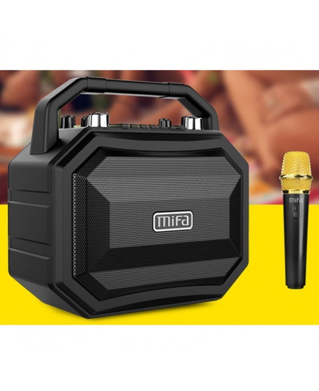اسپیکر بلوتوثی میفا Mifa T520 که با توان خروجی 30 واتی با داشتن باطری 4000 میلی آمپر ساعتی و داشتن یک میکروفون این قابلیت را به شما میدهد تا با موزیک مورد علاقه خود بخوانید و لذت ببرید.
