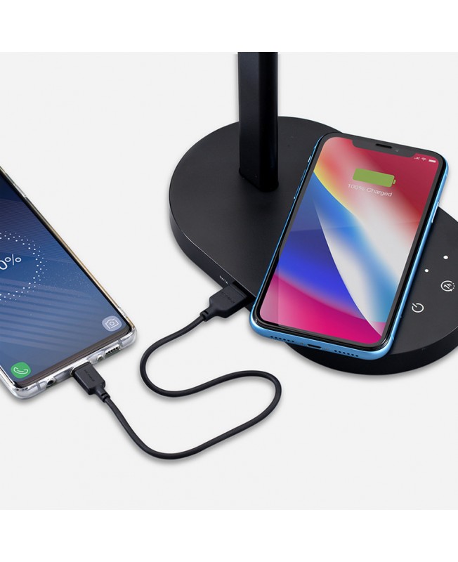 یکی از ویژگی های قابل توجه این محصول برند مومکس وایرلس شارژ بودن همراه با فناوری شارژ QI آن است که این امکان را فراهم می سازد تا دستگاهای دارای این قابلیت را در فاصله ای کمتر از 10 میلی متر بدون نیاز به جداسازی شارژ نماید ، پایه این چراغ پد Wireless Charge دارد و می تواند گوشی های هوشمند را با حداکثر توان 10 وات (5V/1A,9V/1A) شارژ نمایید، البته ناگفته نماند که علاوه بر این پد یک پورت خروجی USB-A با شدت جریان و ولتاژ (5V/1A) نیز وجود دارد که از آن هم می توانید برای شارژ دستگاهای خود استفاده کنید تا دیواس های شما را به صورت ایمن و محافظت شده در برابر نوسانات جریان ، ولتاژ ، اتصال کوتاه و افزایش دما شارژ کند.به این نکته هم باید اشاره کرد که این محصول دارای دارای گواهینامههای ایمنی و استاندارد CCC, CE, FCC, RoHS است.