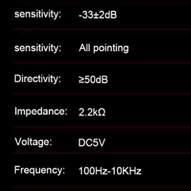 از ویژگی های صوتی این میکروفون می توان از بازه فرکانسی 100 هرتز تا 10 کیلو هرتز و حساسیت 33dB+/-2dB- نام برد همچنین کابلی متصل شده به این میکروفون وجود دارد که جهت اتصال به درگاه USB لپ تاپ می باشد و منبع تغذیه هم از همین کابل تامین می شود