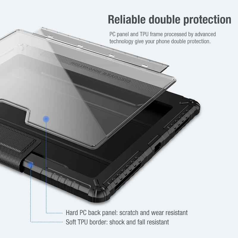 کیف تبلت Bumper Leather Case Pro که توسط نیلکین ساخته شده مخصوص آیپد های Apple iPad Pro 12.9 (2021), iPad Pro 12.9 (2020) می باشد و همچنین دارای قابلیت استند است.
