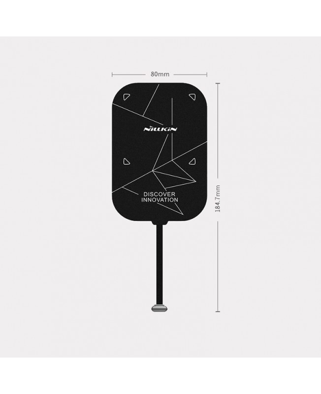 این گیرنده که توسط کمپانی نیلکین تولید شده است که دارای اندازه 80 در 115 میلی متر است که بیشتر برای استفاده روی تبلت کاردبرد دارد و اگر تبلت شما قابلیت شارژ بی سیم ندارد شما می توانید با خرید این محصول این ویژگی را به دستگاه خود اضافه نمایید. نحوه کار با این دستگاه بسیار ساده است به گونه ای که کافی است برچسب گیرنده را برداشته و به پشت گوشی موبایل خود بچسبانید و کابل متصل به آن را به درگاه گوشی وصل نمایید. لازم به ذکر است نکته ی بسیار مهمی که در رابطه با این گیرنده وجود دارد ، وزن بسیار کم و ضخامت بسیار کمی است که به خود اختصاص داده است به طوری که ضخامت این گیرنده 1 میلی متر می باشد. این محصول در سایز مختلف Long و Short می باشد که تفاوت آن ها در طول کابل می باشد و باید با توجه به اندازه ی گوشی موبایل خود شارژر بی سیم مناسب را انتخاب نمایید.