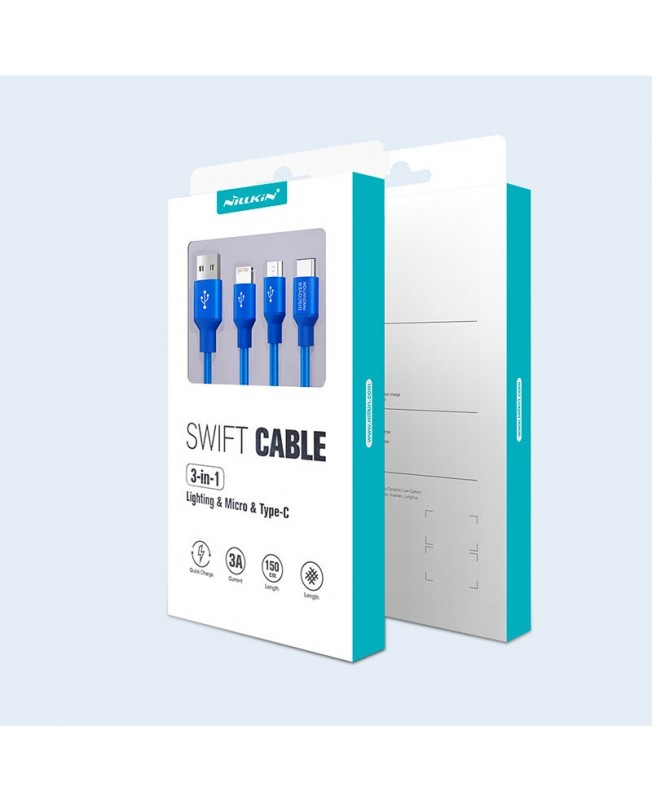 کابل تبدیل USB به لایتنینگ/microUSB/Type-c نیلکین 1.5 متری | Nillkin Swift 3in1 Cable