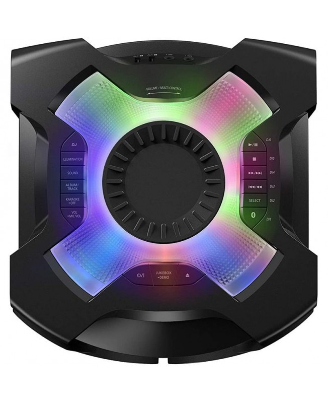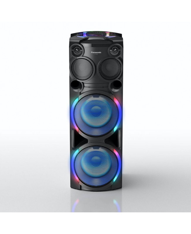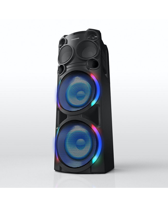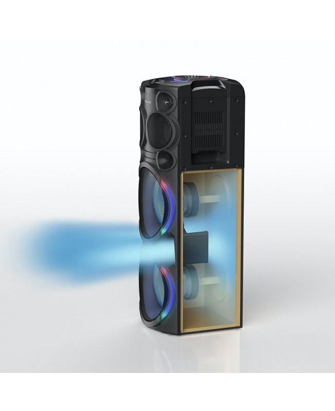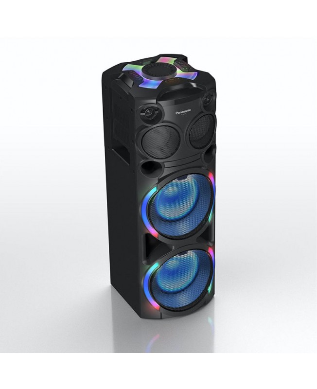 یک اسپیکر قدرتمند با آپشن های جذاب مثل بیس قوی ، رقص نور هوشمند ، نوع اتصال متنوع و ... میتواند برای میهمانی ها بسیار مناسب باشد. ویژگی هایی که همه در پاناسونیک SC-TMAX 50 وجود دارد و در ادامه به آن ها خواهیم پرداخت. اسپیکر برقی SC-Tmax 50 پاناسونیک گه 20 کیلوگرم وزن دارد در ابعاد 326*904*305 میلی متر تولید شده است. اندازه SC-TMAX 50 آنقدری بزرگ نیست که در جاگذاری آن در محیط خانه یا جاهای دیگر دچار مشکل شوید. همانطور که گفتین SC-TMAX 50 با برق مستقیم کار میکند و شارژی نیست. هنگام پخش موزیک رقص نور هوشمند SC-TMAX 50 چشم نواز است و هیجان کافی را به شما خواهد داد. رقص نوری که هم دور ساب ووفر اسپیکر قرار دارد و هم روی پنل رویی اسپیکر. اتصال به Panasonic SC-TMAX 50 از طریق بلوتوث انجام میشود که ورژن بلوتوث آن 5 است. همچنین میتوانید با فلش مموری از طریق درگاه USB و با CD از طریق CD Player به SC-TMAX 50 متصل شوید. توان خروجی اسپیکر 2000 وات میباشد که از 6 درایور در این اسپیکر استفاده شده است. دو ساب ووفر 20 سانتی متری با توان خروجی 500 وات ، دو میدرنج 10 سانتی متری با توان خروجی 250 وات و 2 توییتر 6 سانتی متری با توان خروجی 250 وات پاناسونیک SC-TMAX 50 را به یک اسپیکر قدرتمند 2000 واتی تبدیل کرده است. دو ورودی میکروفون روی پاناسونیک SC-TMAX 50 وجود دارد که میتوانید هنگام پخش موزیک همزمان با آن بخوانید و لذت بیشتری از آن ببرید. همچنین 2 درگاه USB روی این اسپیکر قرار دارد تا بتوانید گوشی موبایل یا هرچیز دیگری را با آن شارز نمایید. یک نکته قابل توجه راجب TMAX 50 پاناسونیک بیس خیلی خوب آن است که خود شرکت پاناسونیک به آن Airquake bass میگوید و دلیل آن این است که تمام بیس را روی به جلو پخش میکند تا نهایت لذت را از یک موزیک بیس دار ببرید. به وسیله اپلیکیشن پاناسونیک که برای گوشی های اندروید در دسترس میباشد میتوانید کنترل کردن اسپیکر را به ساده ترین روش ممکن انجام دهید و از آن لذت ببرید.
