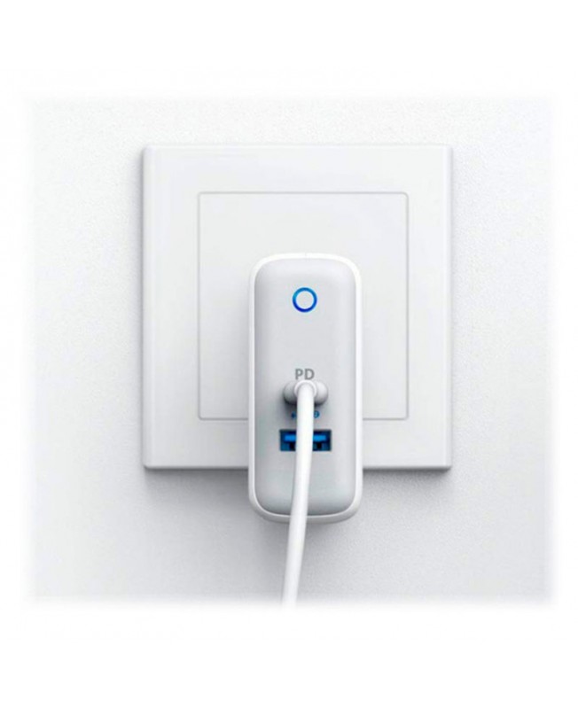 شارژر PD انکر مدل Anker PowerPort II PD A2321 دارای توان 49.5 واتی میباشد که از تکنولوژی Power Delivery و Power IQ 2 پشتیبانی میکند. آداپتور شارژ انکر که بدون نیاز به مبدل میتوانید به پریز برق متصل کنید ، دارای دو درگاه خروجی USB-A و USB-C میباشد. پورت USB این محصول با حداکثر توان 18 واتی میتواند دستگاه های مورد نیاز شما را شارژ نماید که از تکنولوژی Power IQ 2 پشتیبانی میکند. این تکنولوژی با توجه به چیپستی که درون آن قرار دارد ، قابلیت تشخیص میزان ولتاژ و آمپر مورد نیاز دستگاهی که به آن متصل میکند را داراست و بر اساس آن گوشی ، تبلت و سایر لوازم جانبی را شارژ میکند. همچنین یک پورت USB-C روی Anker A2321 قرار دارد تا بتوانید بوسیله آن دستگاه های مورد نیاز خود را شارژ نمایید که حد اکثر توان خروجی آن 30 وات میباشد. در مجموع میتوان گفت شارژر PD انکر A2321 با 49.5 وات توان خروجی قابلیت شارژ تمامی دستگاه های مورد نیاز شما را دارد که با دو درگاه خروجی USB-A و USB-C میتوانید آن ها را شارژ نمایید.