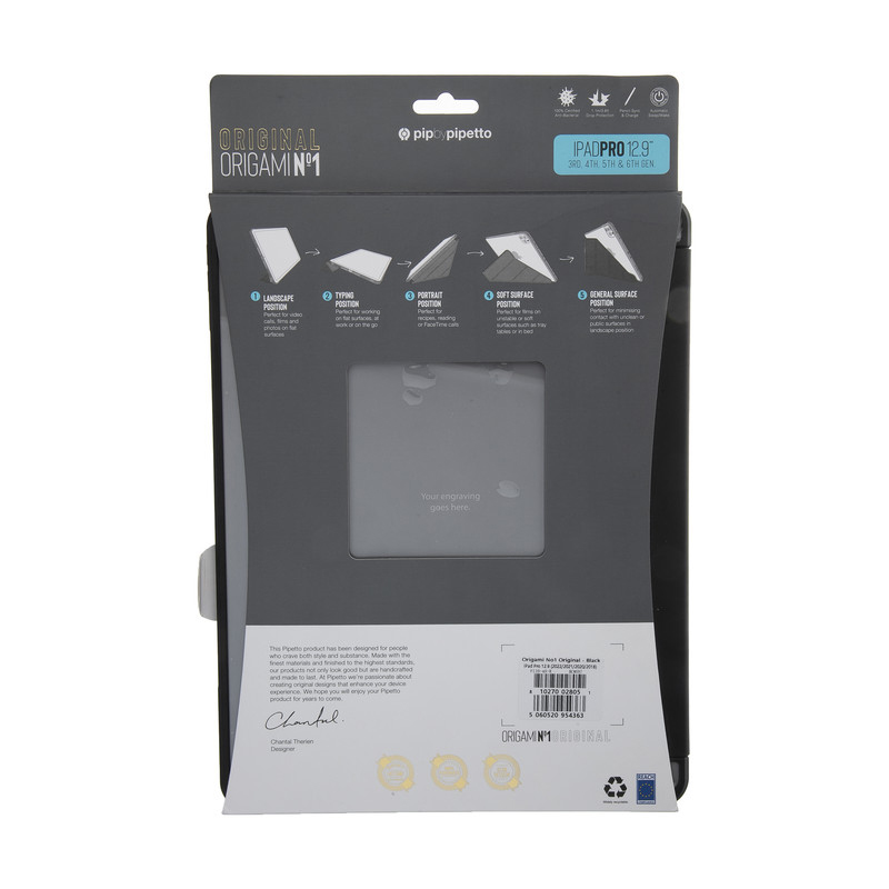 کاور Origami برای آیپد پرو 12.9 اینچی نسل 3 تا 6 طراحی شده است. این کاور به خوبی از پشت، و قسمت جلو (صفحه نمایش) دستگاه شما محافظت کرده و در برابر خطوخش و ضربههای نه چندان شدید محافظت میکند. کاور Origami Transparent ابعاد و برش دقیقی دارد و برای افرادی که نمیخواهند در ابعاد و وزن دستگاهشان تغییر زیادی ایجاد شود مناسب است. قسمت پشتی این دستگاه از پلاستیک شفاف طراحی شده تا دستگاه به خوبی نمایان باشد. کاور پیپتو مدل Origami Transparent پوشش داخلی نرمی دارد و از جنس میکروفیبر ساخته شده است. از مشخصههای این کاور میتوان به استفاده از آهنربا در بدنه آن اشاره داشت؛ با استفاده از این آهنرباها کاربر می تواند از حالت استند این کاور بهره ببرد. هنگامی که در محل کار، کلاس یا در حین انجام فعالیتهای روزمره هستید، با استفاده از حالت استند کاور میتوانید به تایپ کردن یا تماشای فیلم بدون نیاز به پایه نگهدارنده یا استفاده از دست به کارتان ادامه دهید. گفتنی است این کاور 5 موقعیت مختلف استند دارد که هرکدام برای امور مختلفی می تواند کاربردی باشند.