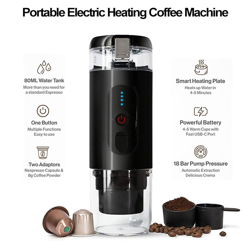 باتری این دستگاه یکباتری 3000 میلی آمپری است و قابلیت شارژ با ولتاژ 12 ولت / 10 آمپر را دارد. از ویژگی های مهم این دستگاه قابلیت استفاده ازقهوه ی آسیاب شده یا کپسول های آماده اسپرسو با طعم های مختلف است. ابعاد این محصول ۲۲×۸×۸ سانتیمتر است و دارای وزن 700 گرم است پس جهت حمل به مشکل بر نخواهید خورد و به راحتی داخل کیف و اتومبیل شما جا می شود.