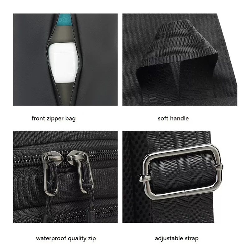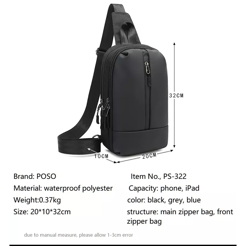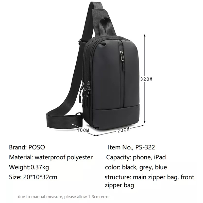 این کیف از جنس پلاستیک و بسیار سبک و خوش دست ساخته شده و دارای مقاومت مناسبی در برابر آب می باشد، لازم به ذکر است که نحوه قرار گیری این کیف روی بدن به صورت کراس بادی بوده و در جلو و یا پشت بدن قرار می گیرد که هنگام استفاده حس خوبی را به شما منتقل می کند ، همچنین هنگام باز و بسته کردن زیپ کیف کراس بادی POSO مدل PS-322 ، کیفیت بالای ساخت آن نمایان می شود. از این کیف جهت حمل لوازم جانبی مانند : انواع شارژر ، پاوربانک ، فلش ، هارد اکسترنال و هندزفری می توان استفاده کرد.یکی از نقاط مثبت این کیف وجود پورت و کابل USB می باشد که از طریق آن می توانید به طور مثال گوشی خود را به پاور بانک داخل کیف متصل کرده و راحت تر از آن استفاده کنید. در آخر هم باید اشاره کرد که با توجه به وزن پایین این کیف، حمل آن به آسانی صورت گرفته و به لطف طراحی هوشمندانه ی خود وسیله های حساس و کوچک نظیر فلش مموری و رم و هندزفری ، با نظم مناسبی قرار می گیرند. این مدل کیف پوسو دارای 4 زیپ و 7 جای مختلف می باشد.