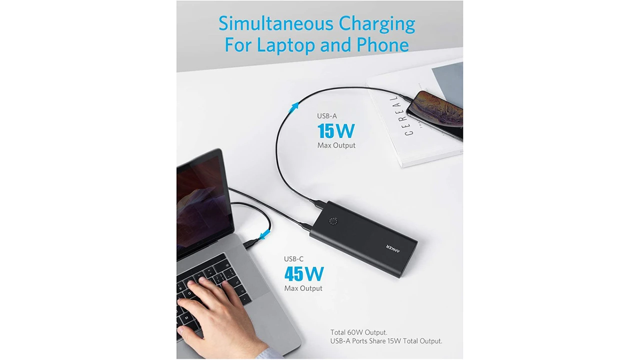 پاور بانک PowerCore Plus Pd 45W with Power Port III Mini تولید شده توسط برند انکر بوده و دارای توان حداکثری 45 وات و ظرفیت 26800 میلی آمپر ساعت می باشد. این محصول دارای یک درگاه USB-C بوده که توان خروجی 45 وات برای این درگاه بوده و با استفاده از آن و کابل USB-C به USB-C درون جعبه می توان لپتاپ های سازگار با خروجی و توان این پاوربانک را هم شارژ کرد. همچنین دو درگاه USB-A نیز در این محصول وجود دارند که توان 12 واتی دارند و این امکان را به کاربران می دهند که 3 دستگاه را به صورت همزمان شارژ کنید. در جعبه این محصول علاوه بر کابلی که اشاره شد، یک اداپتور 30 وات برای شارژ کردن خود این پاور بانک هم وجود دارد، به صورتی که پاوربانک از طریق درگاه USB-C آن شارژ می شود. شارژر همراه انکر از تکنولوژی های شارژ سریع متنوعی برخوردار است به گونه ای که درگاه USB-C آن از فناوری PD و درگاه USB-A آن دارای PowerIQ می باشد، همچنین ویژگی هایی نظیر شارژ ایمن و VoltageBoost نیز در این محصول وجود دارند.