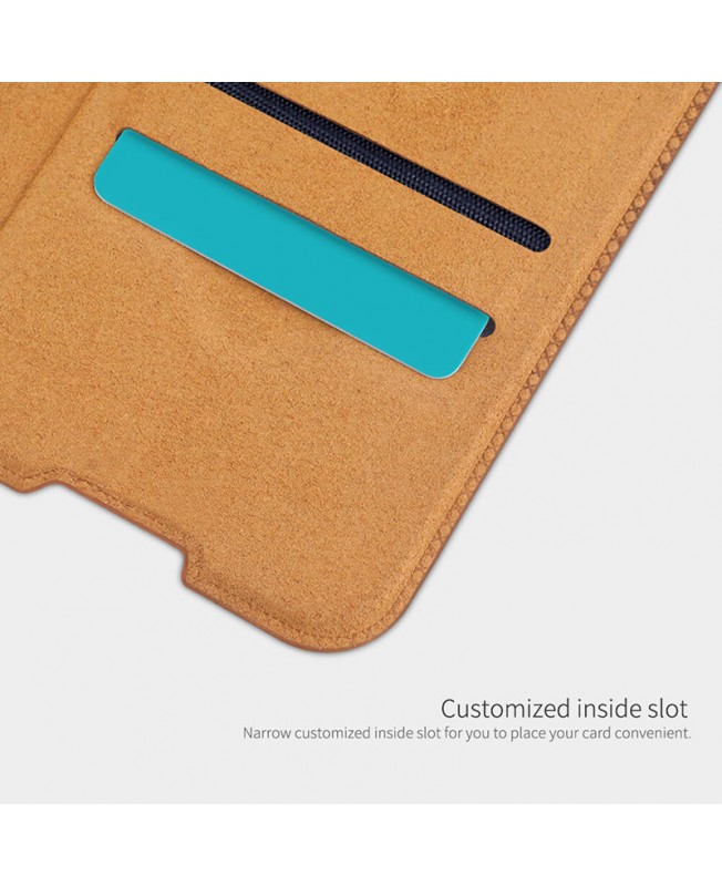 شرکت نیلکین با ارائه ی این کیف کلاسوری چرمی توانسته تمامی انتظارات را که از یک کیف کتابی دارید را برای شما برآورده کند. طراحی این قاب به گونه ای است که به صورت 360 درجه گوشی موبایل را کاور نمیکند و بالا و پایین کاور آزاد می باشد. در این کیف کلاسوری چرمی جای کارتی وجود دارد که کارت هایی مانند کارت بانکی و ... را در آن نگهدارید. Nillkin در طراحی این کیف ظرافت خاصی به خرج داده به طوری که هنگام استفاده از این کیف احساس فوق العاده ای خواهید داشت و کیفیت را احساس خواهید کرد. به دلیل چرم مصنوعی به کار رفته در این کیف هنگام استفاده خیالتان می تواند از بابت لیز خوردن گوشی راحت باشد و علاوه بر محافظت از گوشی خود ظاهری شیک و جذاب به گوشی خود ببخشید.