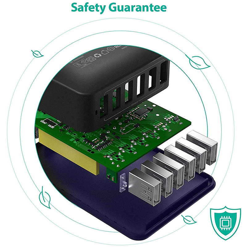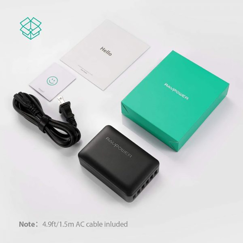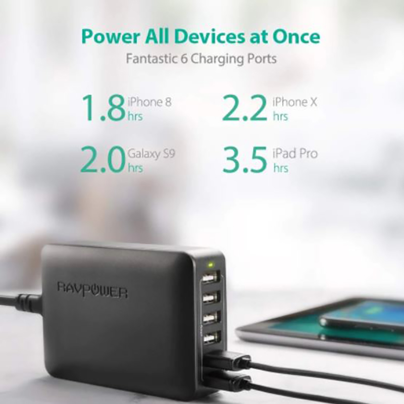 آداپتور شارژ 6پورت USB راوپاور توانایی شارژ همزمان 6 دستگاه شما را با توان خروجی در مجموع 60 وات دارد، و همینطور دارای قابلیت های محافظتی در برابر دما و نوسانات ولتاژ بوده و همین طور از فناوری iSmart پشتیبانی می کند و می تواند گزینه مناسبی برای خرید شما باشد.