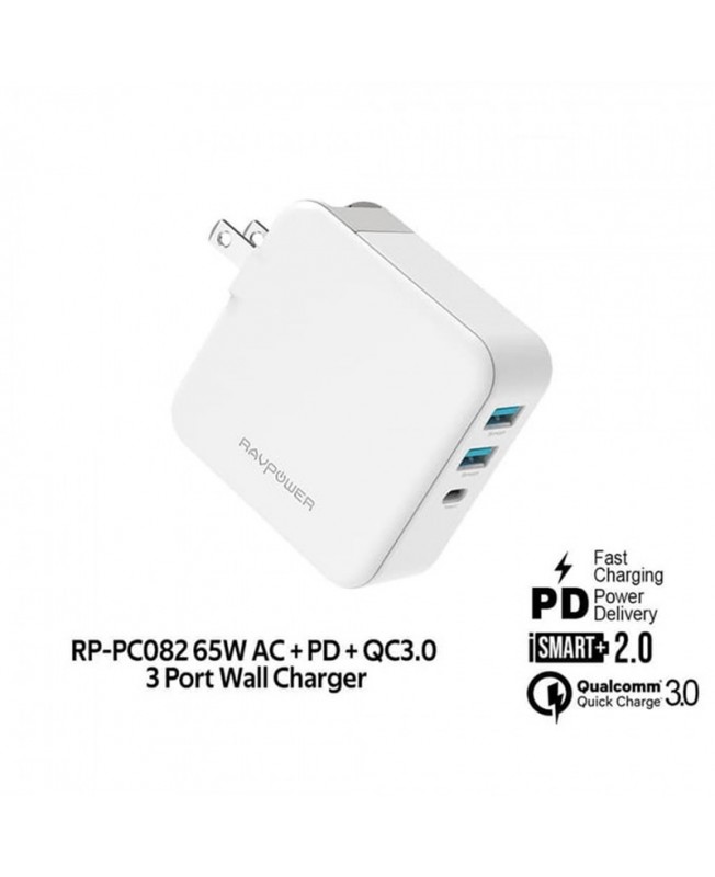 آداپتور 3 پورت RP-PC082 برند راوپاور با وزن 195 گرمی و حداکثر توان 65 وات بر روی خود دارای سه درگاه خروجی USB می باشد که این توانایی را به این محصول داده تا بتواند با به طور همزمان 4 دستگاه را شارژ متصل نماید، شدت جریان خروجی در هر یک از درگاههای خروجی Ravpower 65W 3-port USB PD Wall Charger برابر با 2.4/3A/ 3.25A max آمپر است و این امکان را به شما می دهد تا علاوه بر گوشیهای موبایل، دوربین دیجیتال و موزیک پلیر قابلیت شارژ باتری تبلت و آیپد را هم داشته باشید.البته ذکر این نکته نیز مهم است که در صورت استفاده به طور همزمان از 4 درگاه خروجی این آداپتور شدت جریان خروجی برای بالانس و تامین شارژ هر 3 دستگاه کاهش می بابد و رقمی کمتر از 2.4 آمپر می باشد ،ولتاژ ورودی در این آدپتور شارژر راوپاور هم 100 تا 240 ولت و ولتاژ خروجی در آن 5 / 9 / 12 / 20 ولت است.در آخر هم باید اشاره کرد که از ویژگی های منحصر به فرد این آداپتور مقاومت آن در برابر افزایش ولتاژ، جریان و دما می باشد که از دستگاه شما می تواند به خوبی محافظت کند ، درباره سری این محصول هم جا دارد اشاره کنیم که به صورت جمع شونده طراحی شده و یک تبدیل دو به دو نیز برای استفاده در پریز های ایران در بسته بندی آن قرار داده شده است.