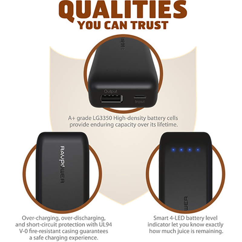 خرید پاوربانک 6700 میلی آمپر ساعت راوپاور Ravpower Ace Series RP-PB060 در شهر جانبی هیلاتل