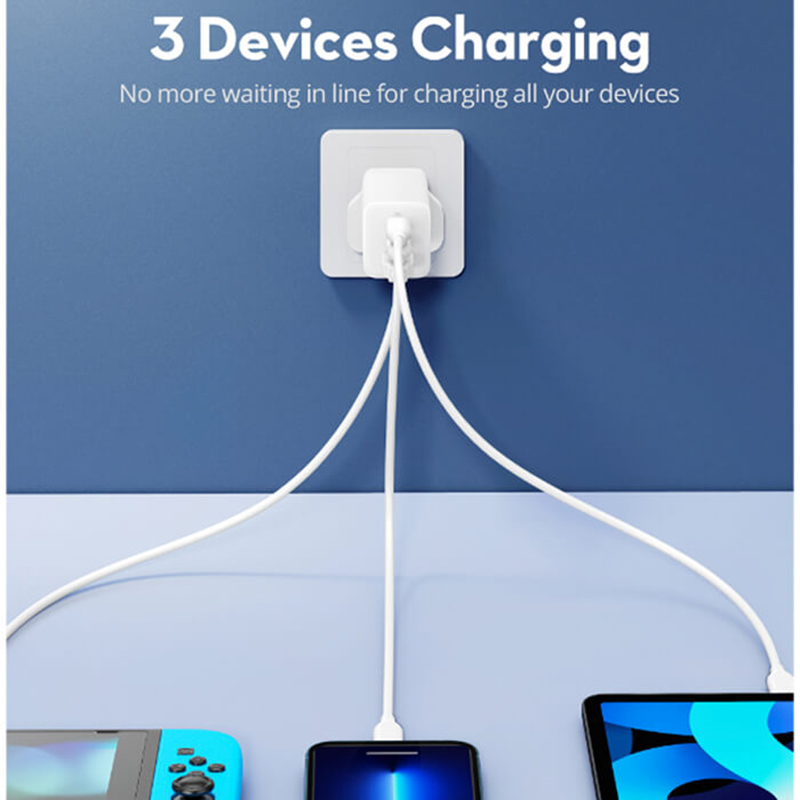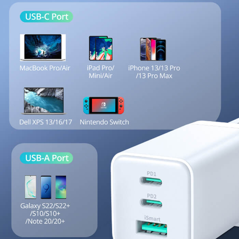 شارژر دیواری RP-PC172 تولید شده توسط برند راوپاور با توان حداکثری 65 وات بوده و دارای سه درگاه برای شارژ محصولات مورد نظر شما به صورت همزمان است و درگاه های آن به صورت USB-A و USB-C اند. ابعاد این کالا بسیار نسبت به امکانات خود مناسب بوده که همین موضوع سبب می شود تا به راحتی قابل حمل باشد. به طور کلی همخوانی خروجی شارژر با ورودی دستگاه های مورد نظر شما اهمیت بالایی دارد تا بتوانید بهترین عملکرد را دریافت کنید. شارژر دیواری راوپاور با فناوری شارژ PD توانایی شارژ Macbook شما را نیز داشته و می توانید از آن استفاده کنید. از دیگر نقاط مثبت RP-PC172 می توان به فناوری ismart اشاره کرد که به کمک آن آداپتور توانایی تشخیص ولتاژ آمپر مناسب با دستگاه شما داشته و این موضوع سبب جلوگیری از آسیب رسیدن به باتری دستگاه متصل می شود.