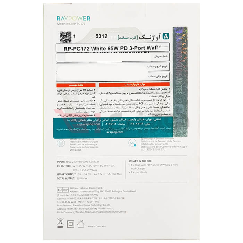 شارژر دیواری 65 وات راوپاور | Ravpower RP-PC172