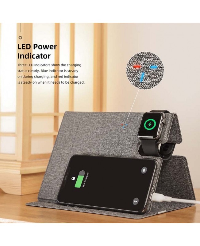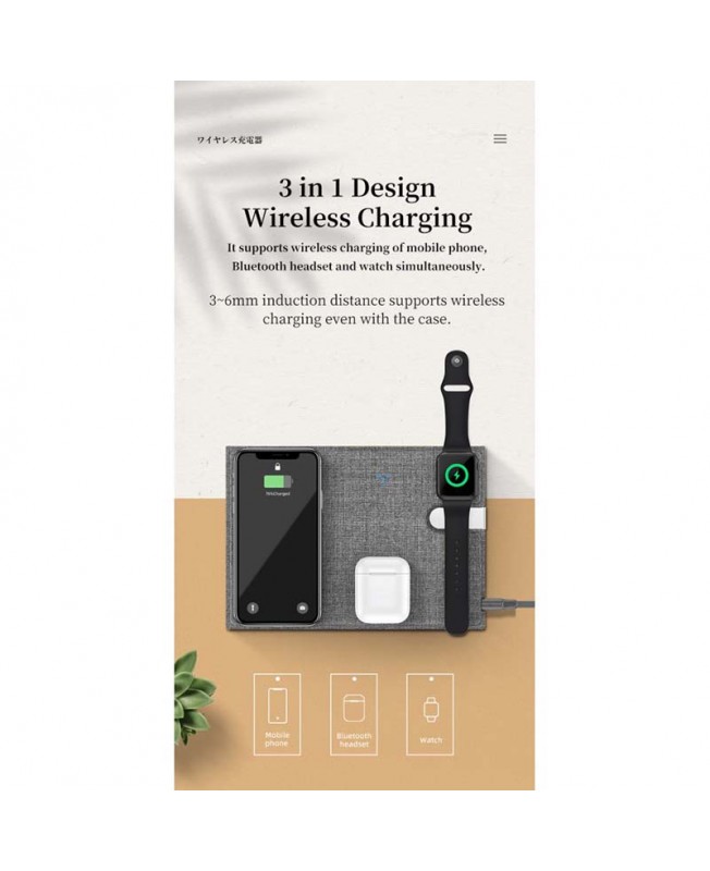 این شارژر بی سیم می تواند به صورت هم زمان گوشی موبایل ، کیس هندزفری و ساعت هوشمند شما را شارژ نمایید و ظاهر شیکی را فضای خود بدهید.